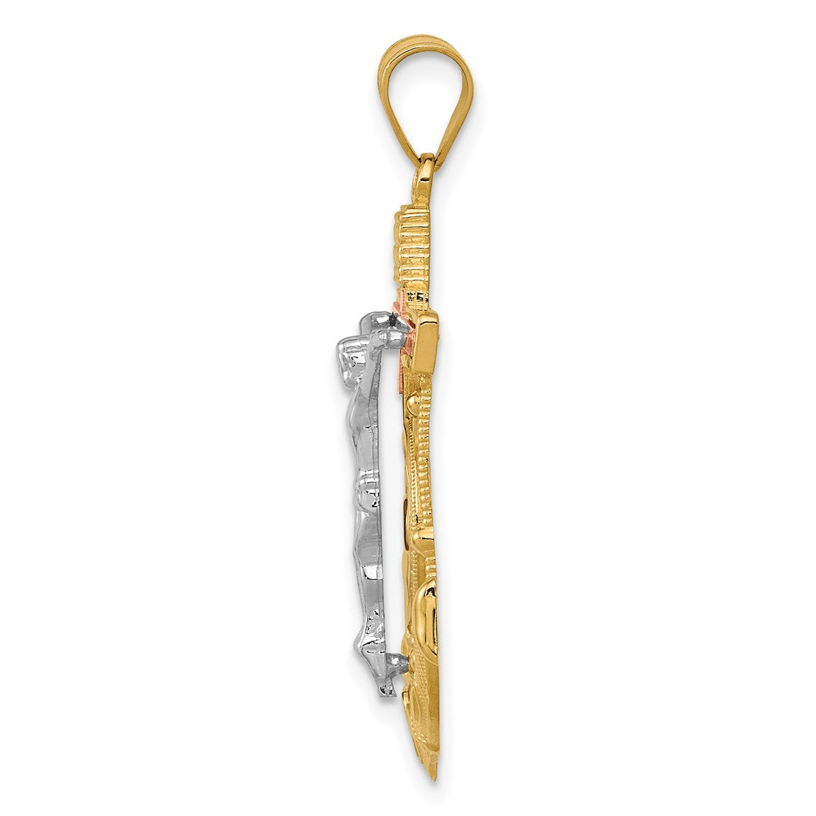 14k Yellow, White & Rose Gold Diamond-Cut w Texture Mariners Cross Pendant C3931
