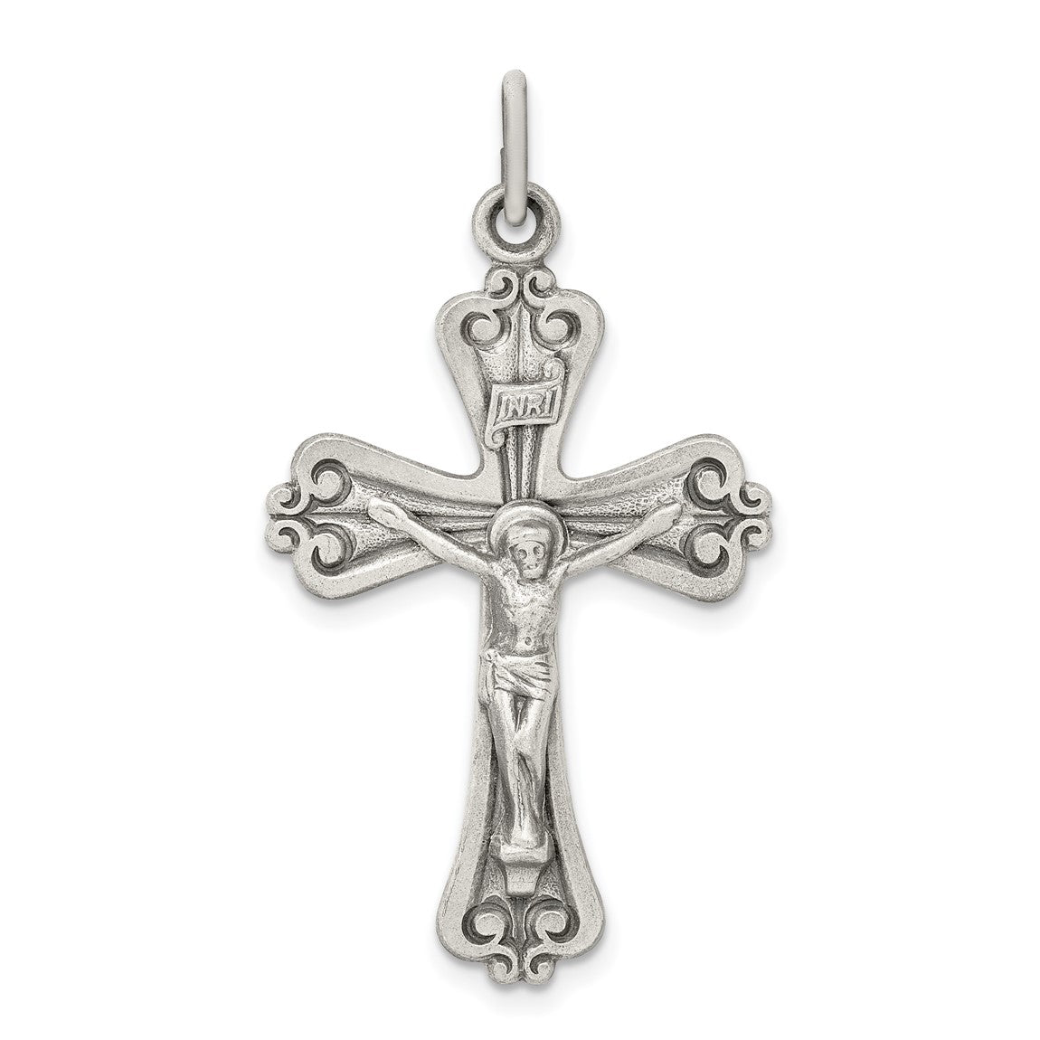 925 Sterling Silver Antiqued and Brushed Inri Crucifix Pendant QC8329