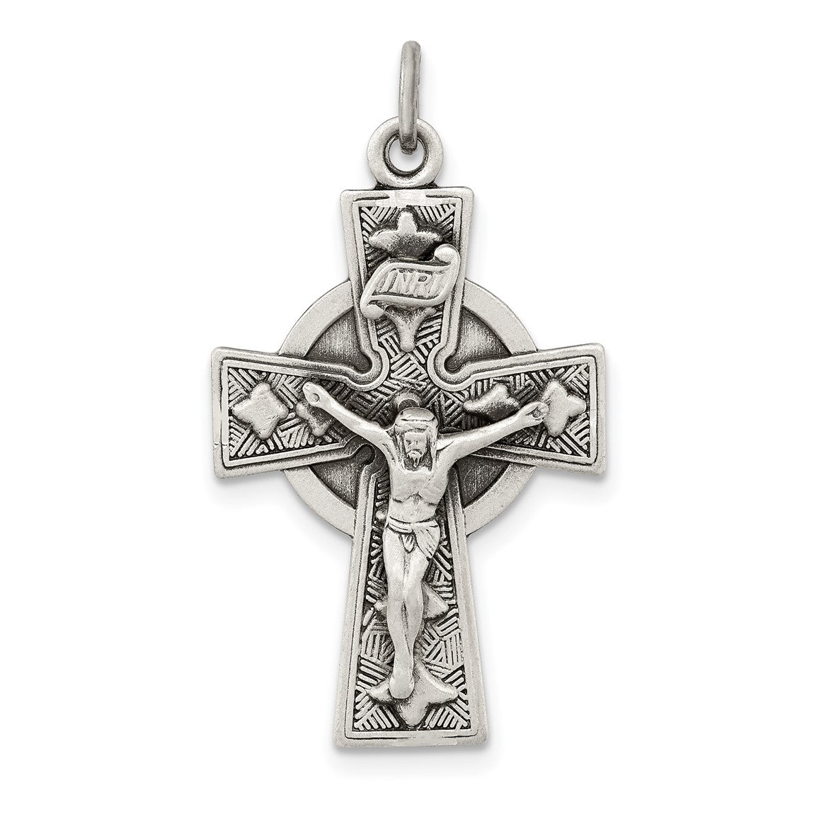 925 Sterling Silver Antiqued Satin Irish Crucifix Cross Pendant QC7346