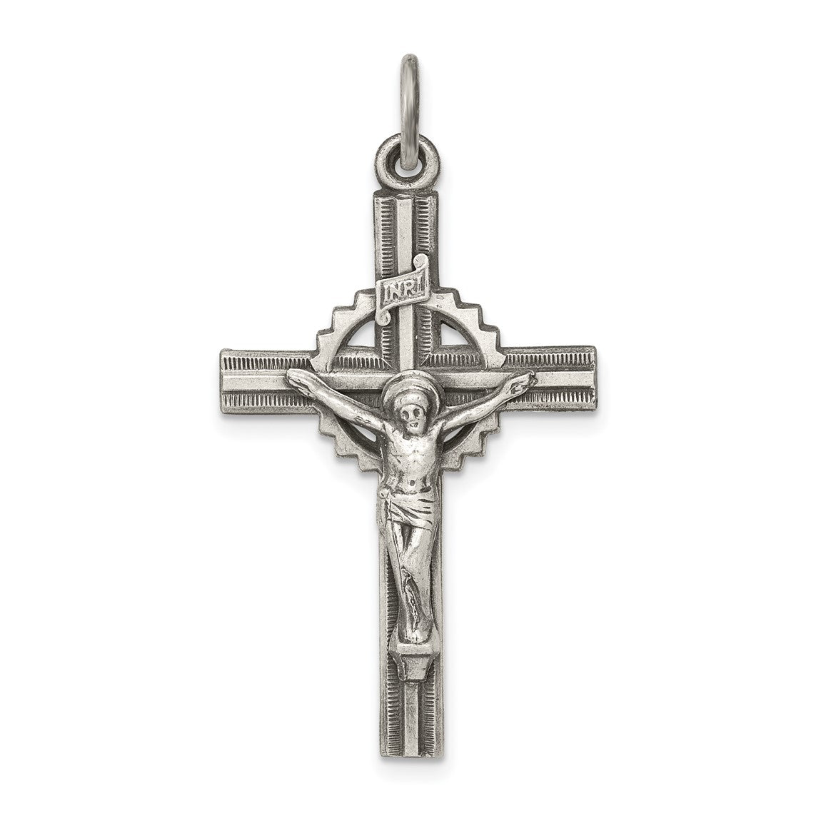 925 Sterling Silver Antiqued, Textured and Polished Inri Crucifix Pendant