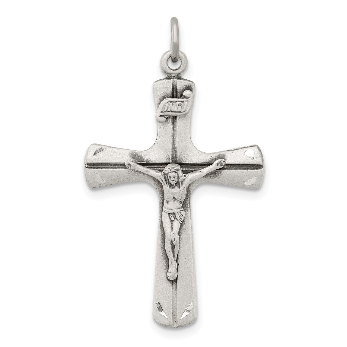 925 Sterling Silver Satin Antiqued Crucifix Pendant
