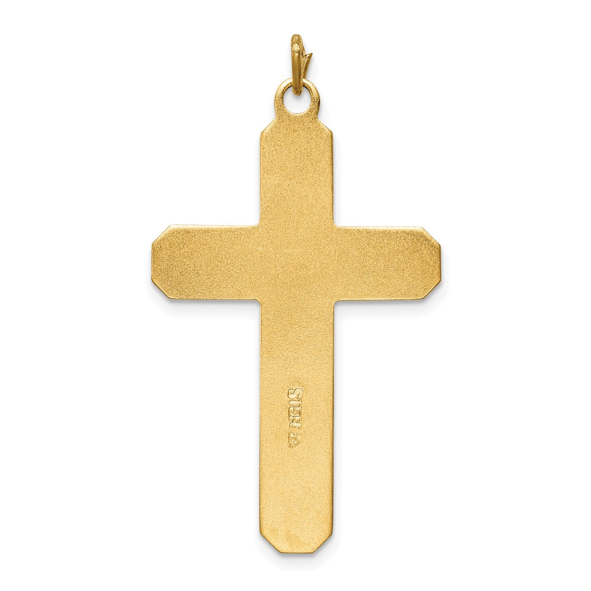 Rhodium-Plated & Yellow 925 Sterling Silver Satin/Polished Corpus Cross Pendant
