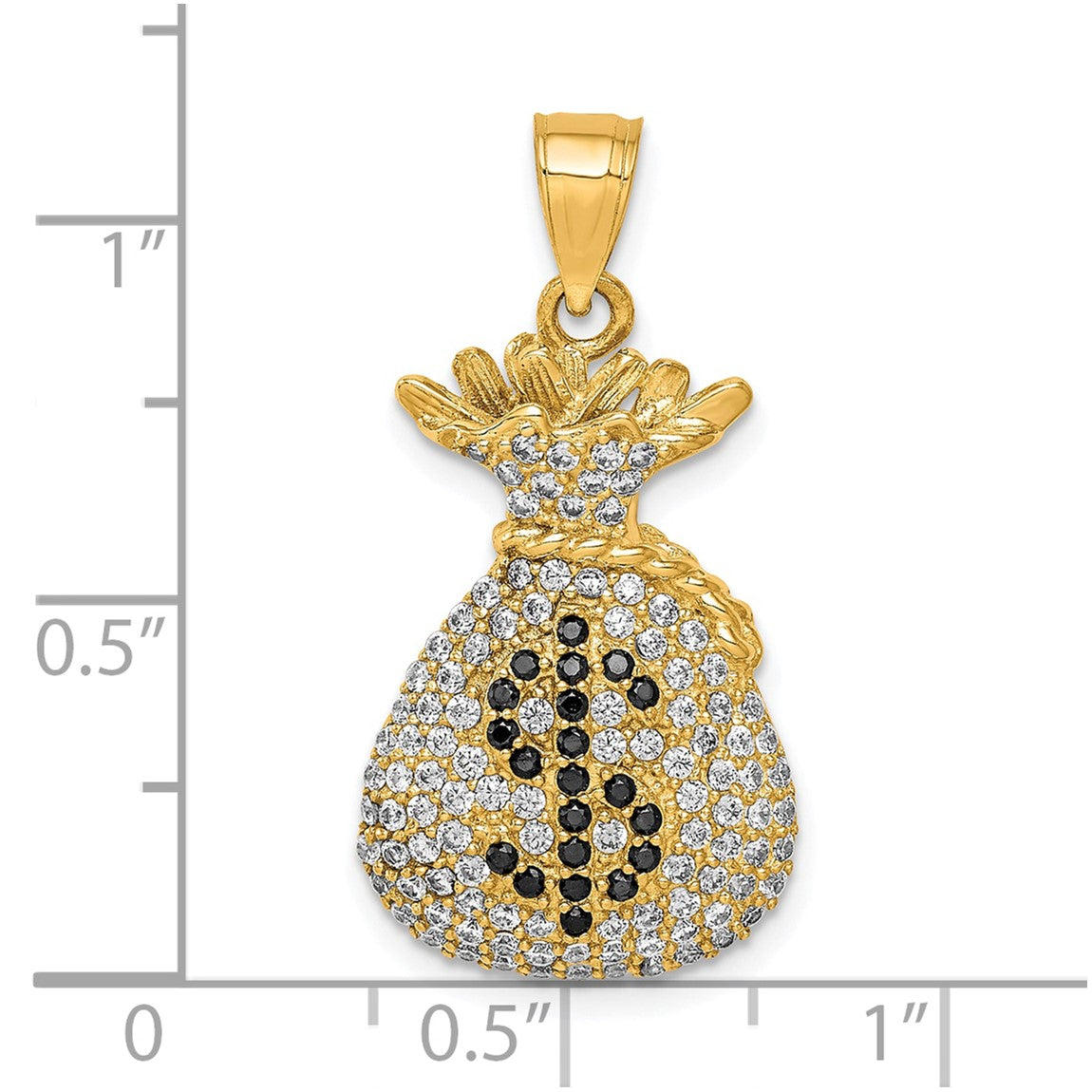 10k Yellow Gold Black and Clear CZ Micropave Money Bag Pendant