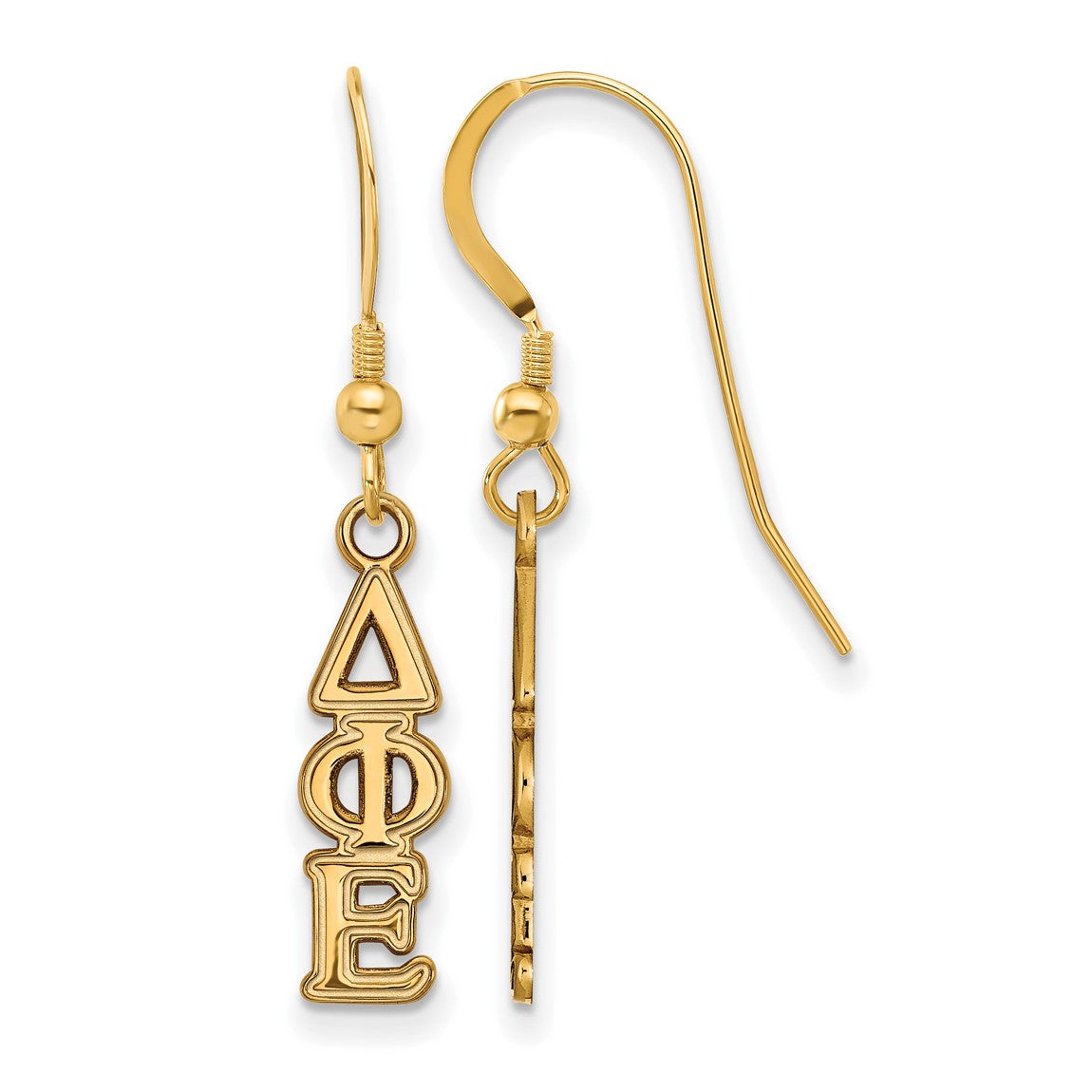 Sterling Silver Gold-plated LogoArt Delta Phi Epsilon Extra Sorority Greek Letters Small Dangle Wire Earrings