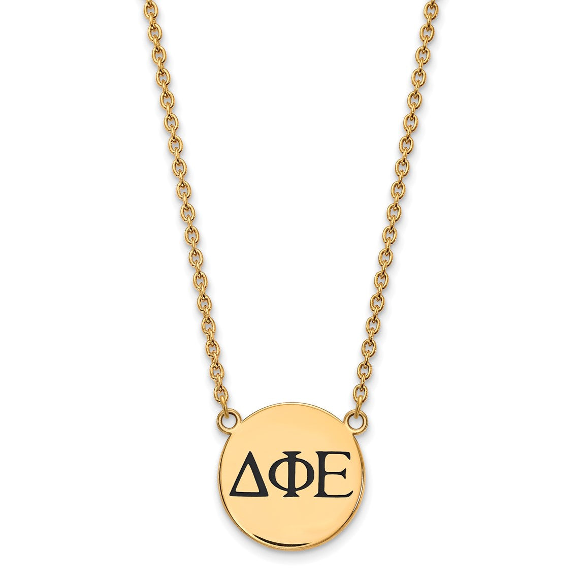 Sterling Silver Gold-plated LogoArt Delta Phi Epsilon Sorority Greek Letters Large Black Enamel Pendant 18 inch Necklace