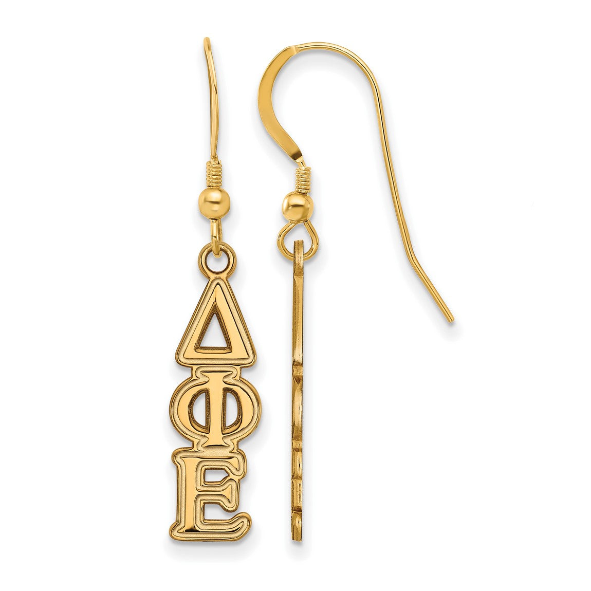 Sterling Silver Gold-plated LogoArt Delta Phi Epsilon Sorority Greek Letters Small Dangle Earrings