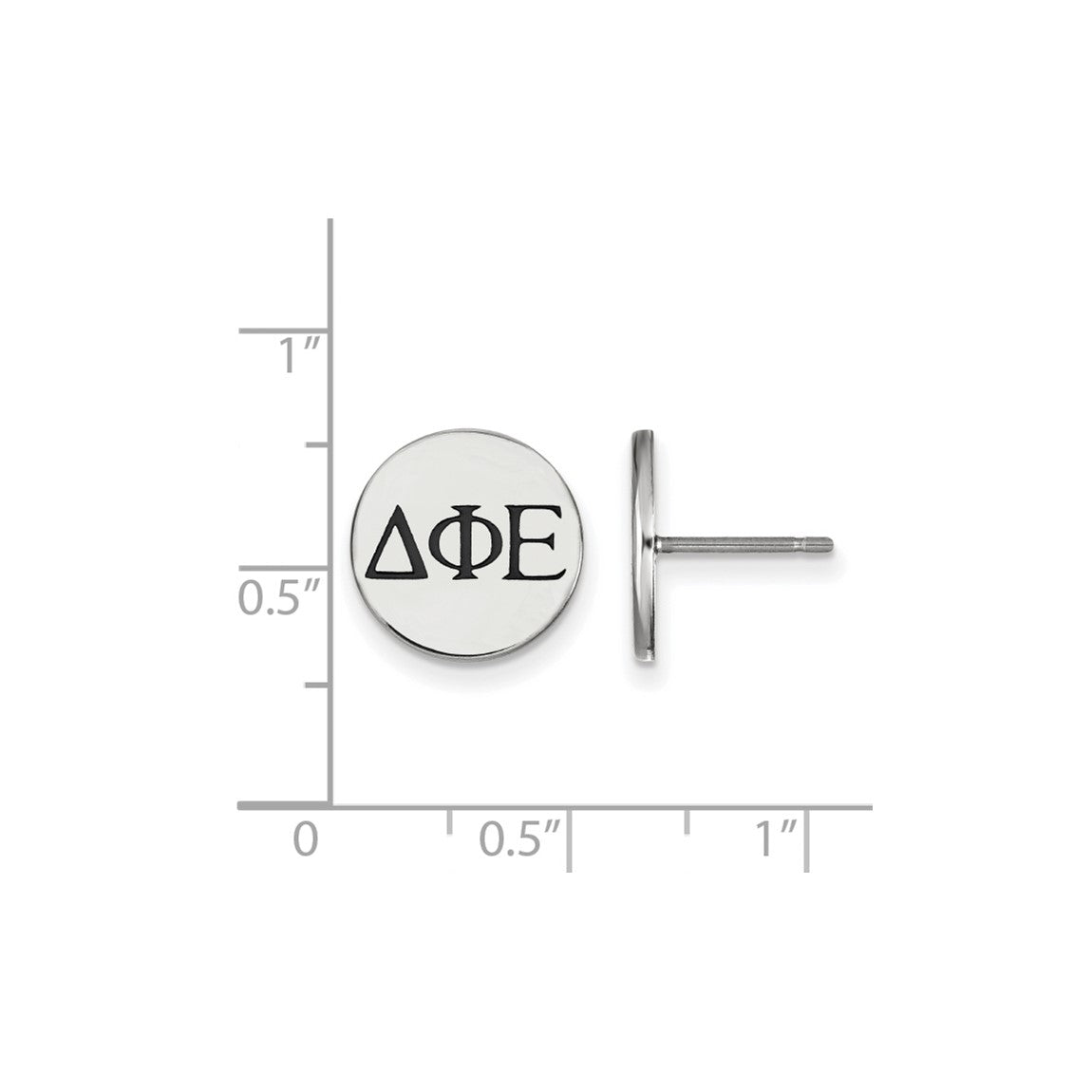 Sterling Silver Rhodium-plated LogoArt Delta Phi Epsilon Sorority Greek Letters Black Enamel Post Earrings