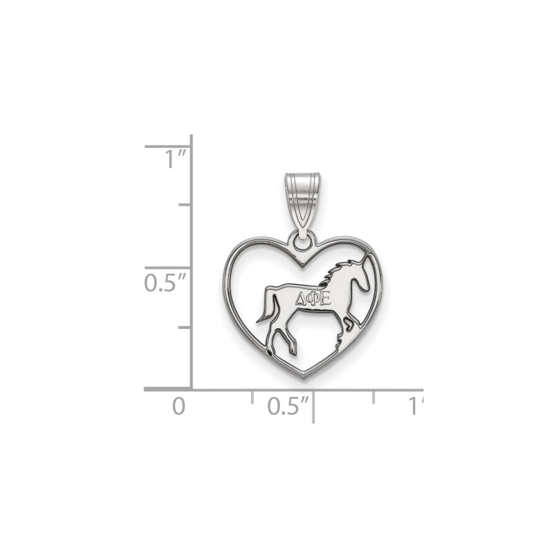 Sterling Silver Rhodium-plated LogoArt Delta Phi Epsilon Sorority Symbol Heart Pendant