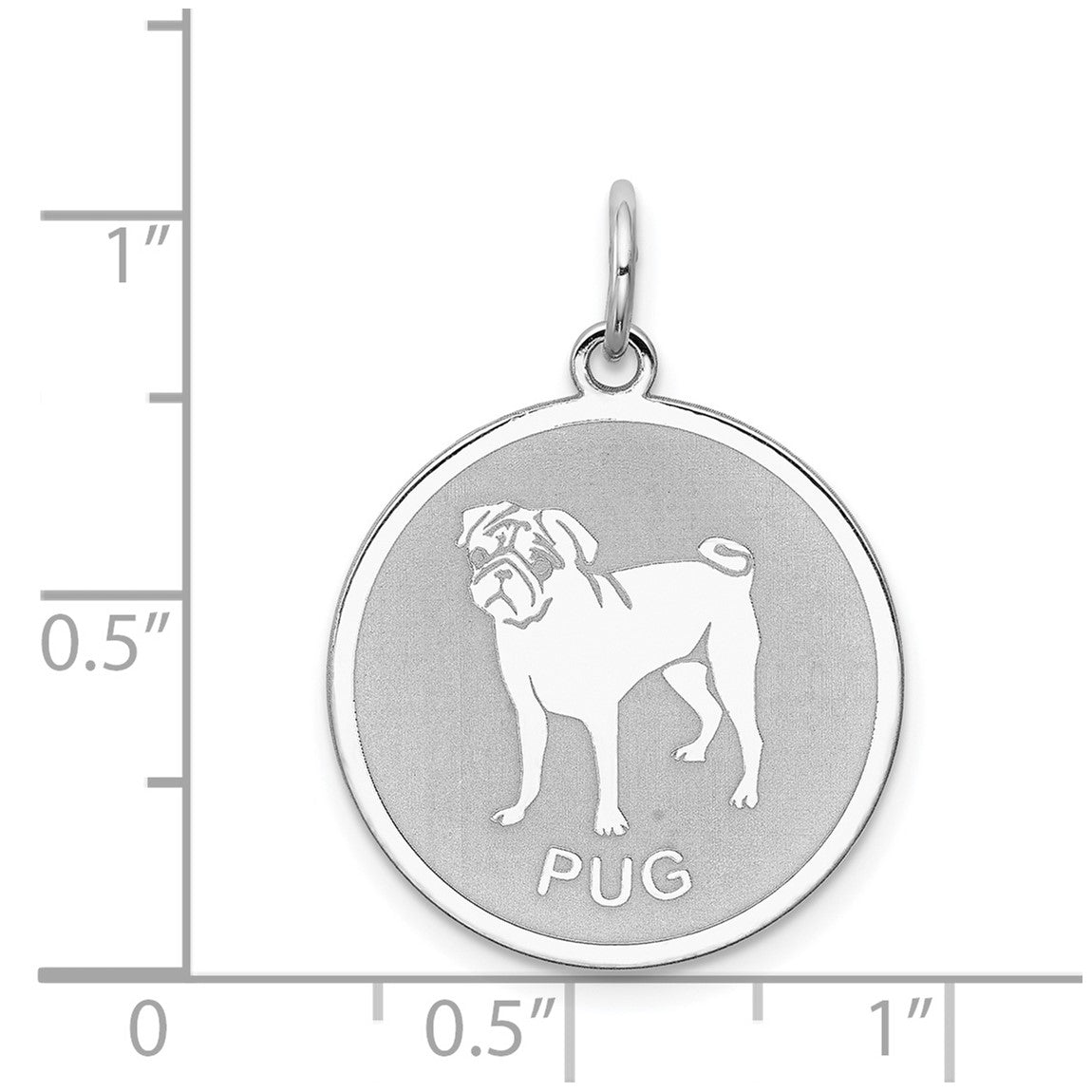 Sterling Silver Rhodium-plated Pug Disc Charm