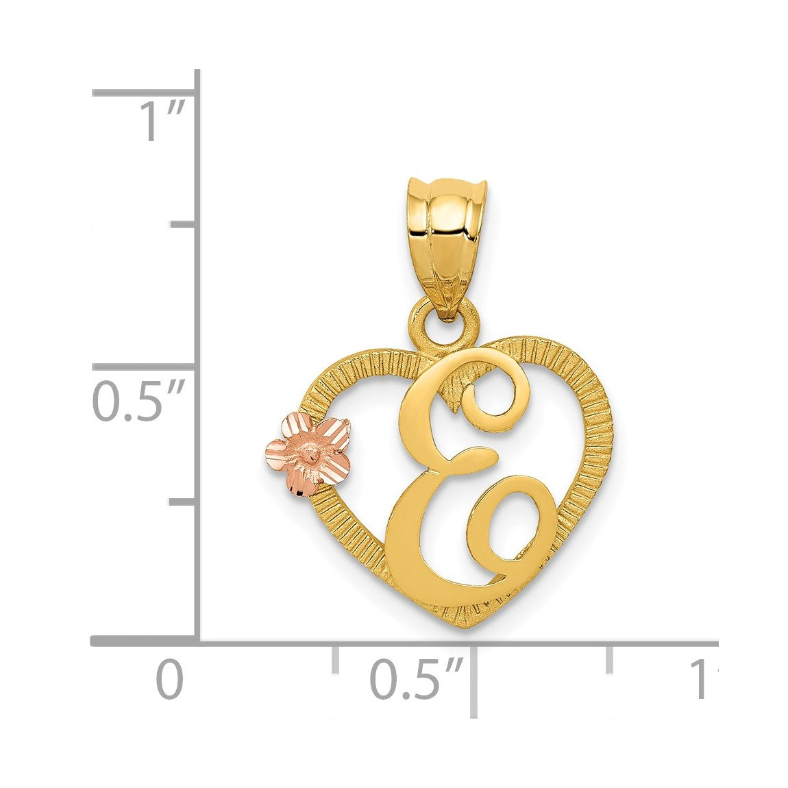 14k Yellow and Rose Gold Initial E In Heart Pendant