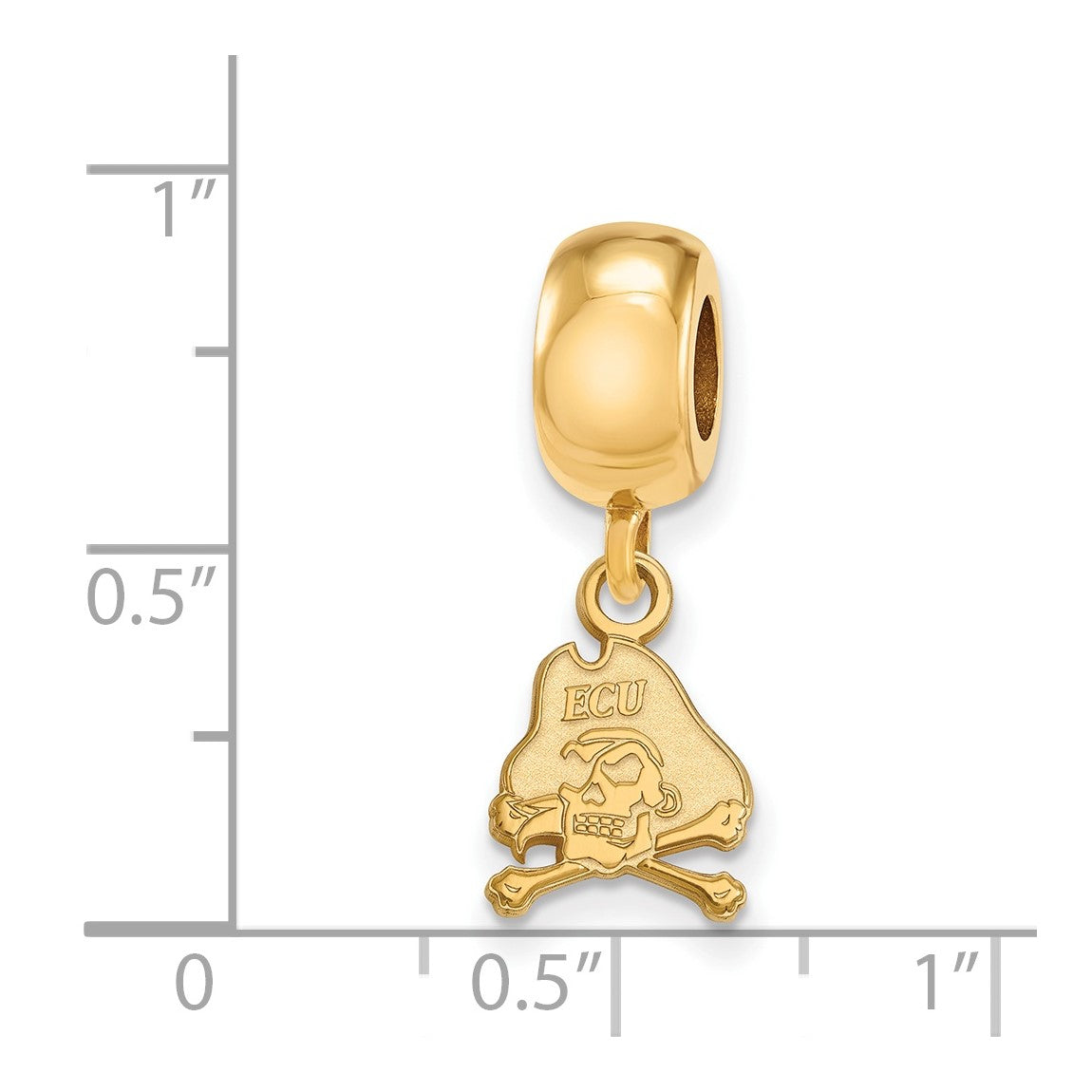 Sterling Silver Gold-plated LogoArt East Carolina University Pirate Extra Small Dangle Bead Charm GP031ECU