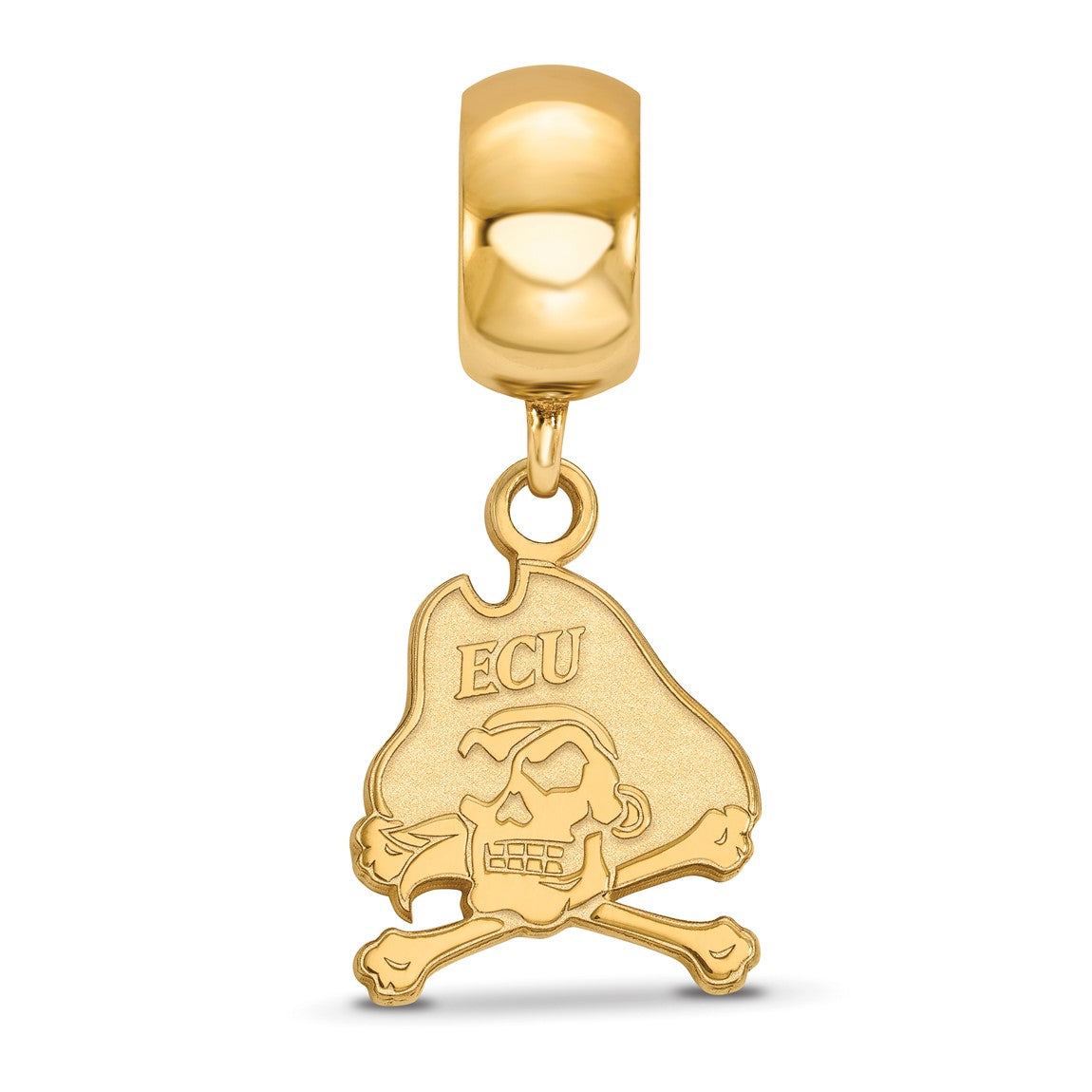 Sterling Silver Gold-plated LogoArt East Carolina University Pirate Small Dangle Bead Charm GP032ECU