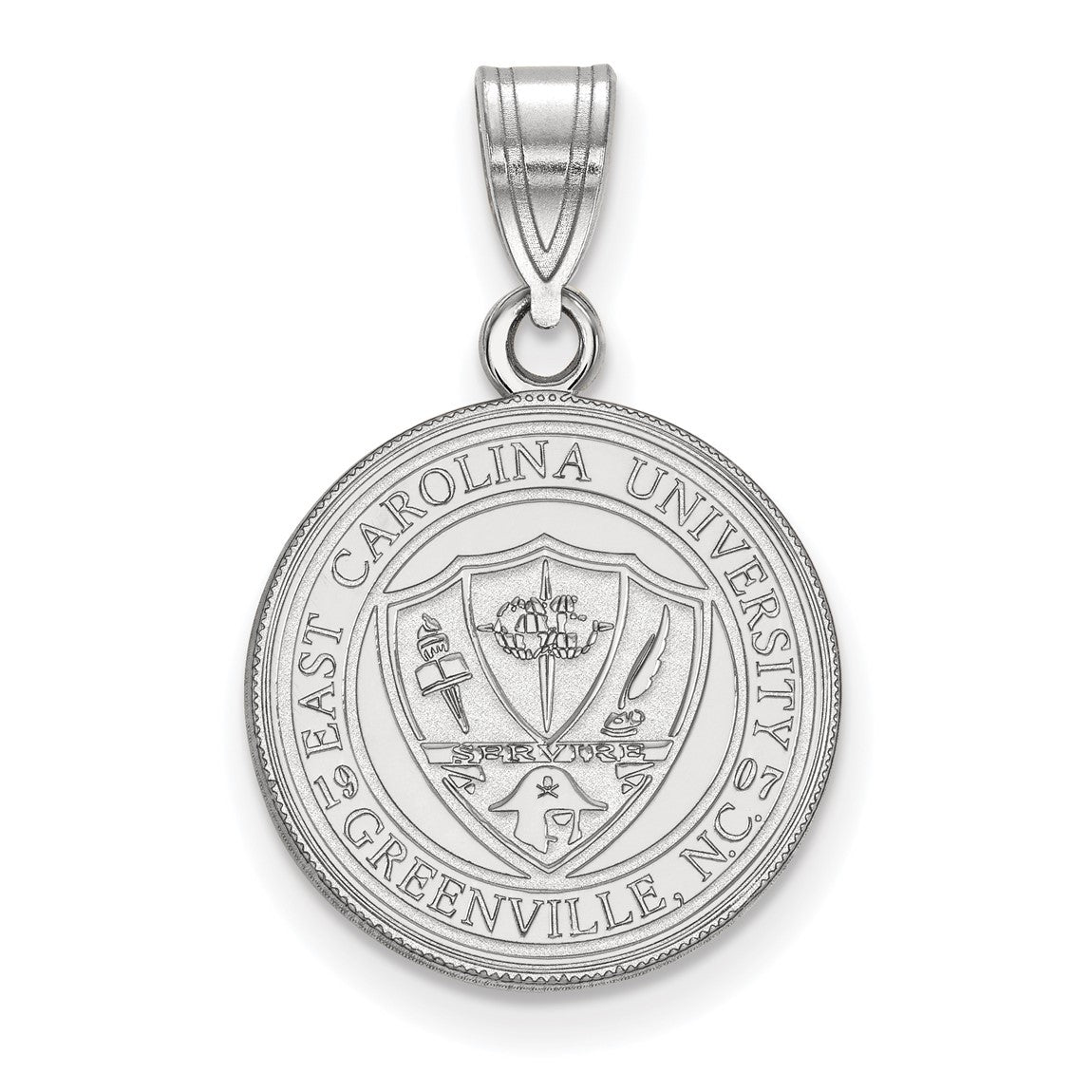 Sterling Silver Rhodium-plated LogoArt East Carolina University Medium Crest Pendant
