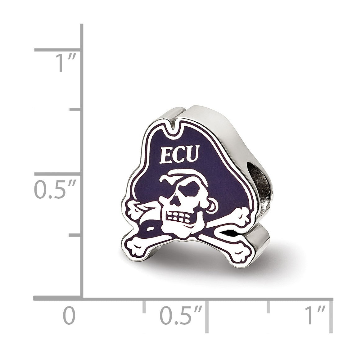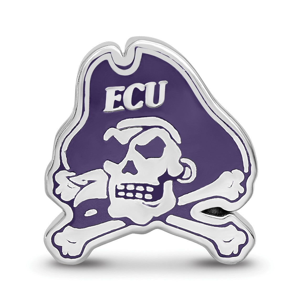Sterling Silver Rhodium-plated LogoArt East Carolina University Pirate Enameled Bead