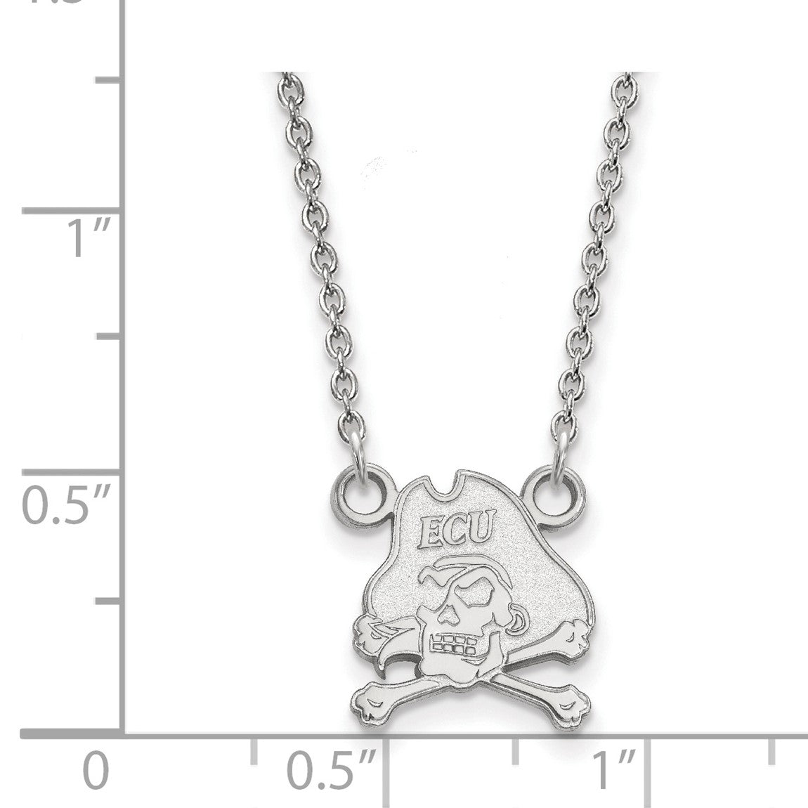 Sterling Silver Rhodium-plated LogoArt East Carolina University Pirate Small Pendant 18 inch Necklace SS011ECU-18