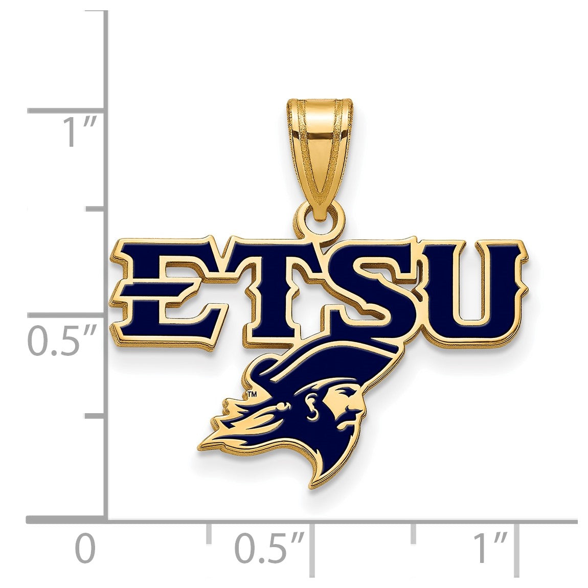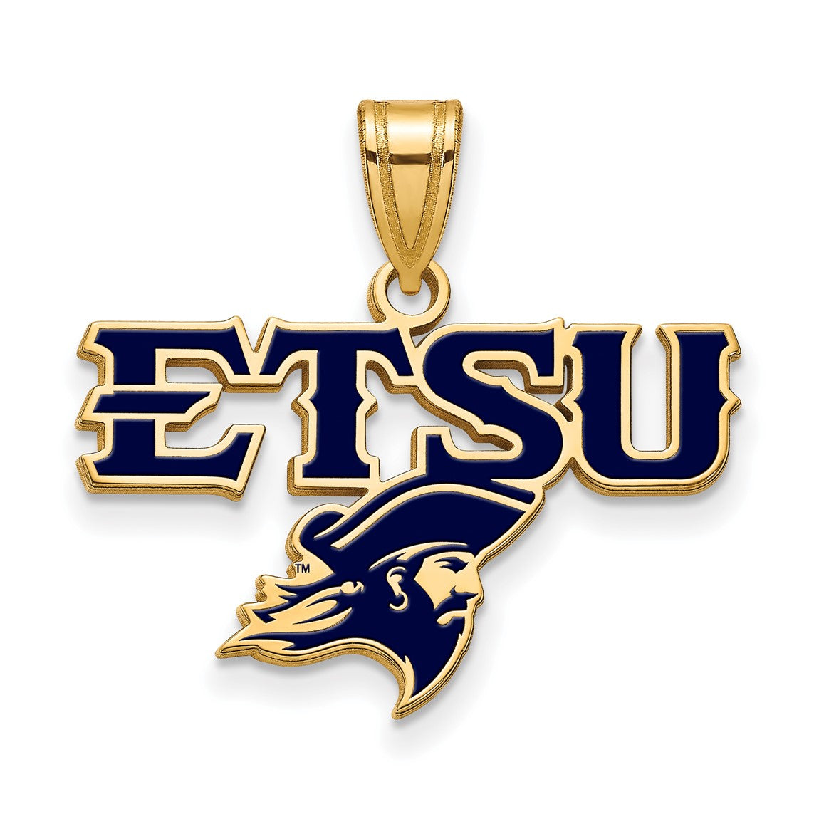 Sterling Silver Gold-plated Enameled LogoArt East Tennessee State U. Medium Pendant