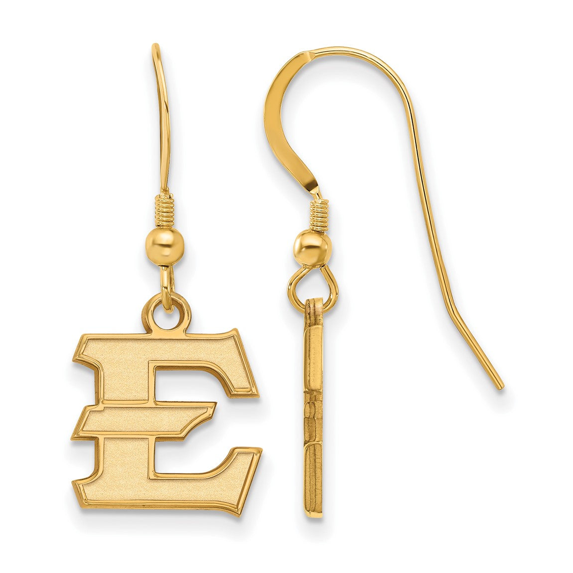 Sterling Silver Gold-plated LogoArt East Tennessee State University Letter E Small Dangle Wire Earrings