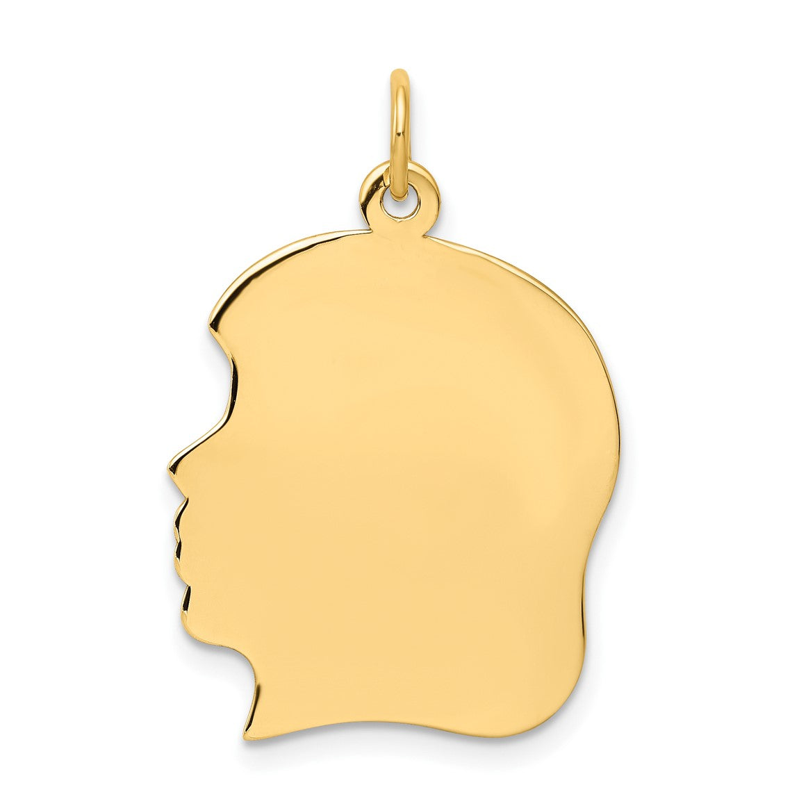 10k Yellow Gold Plain Large .018 Gauge Facing Right Engravable Girl Head Charm