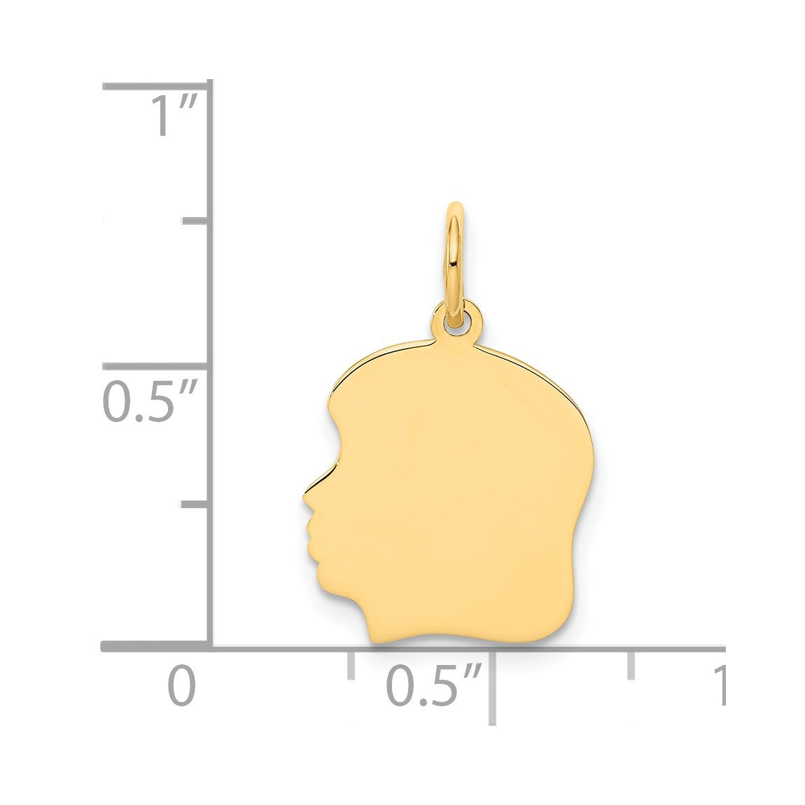 14k Gold Plain Medium .009 Gauge Facing Left Engravable Girl Head Charm XM111/09