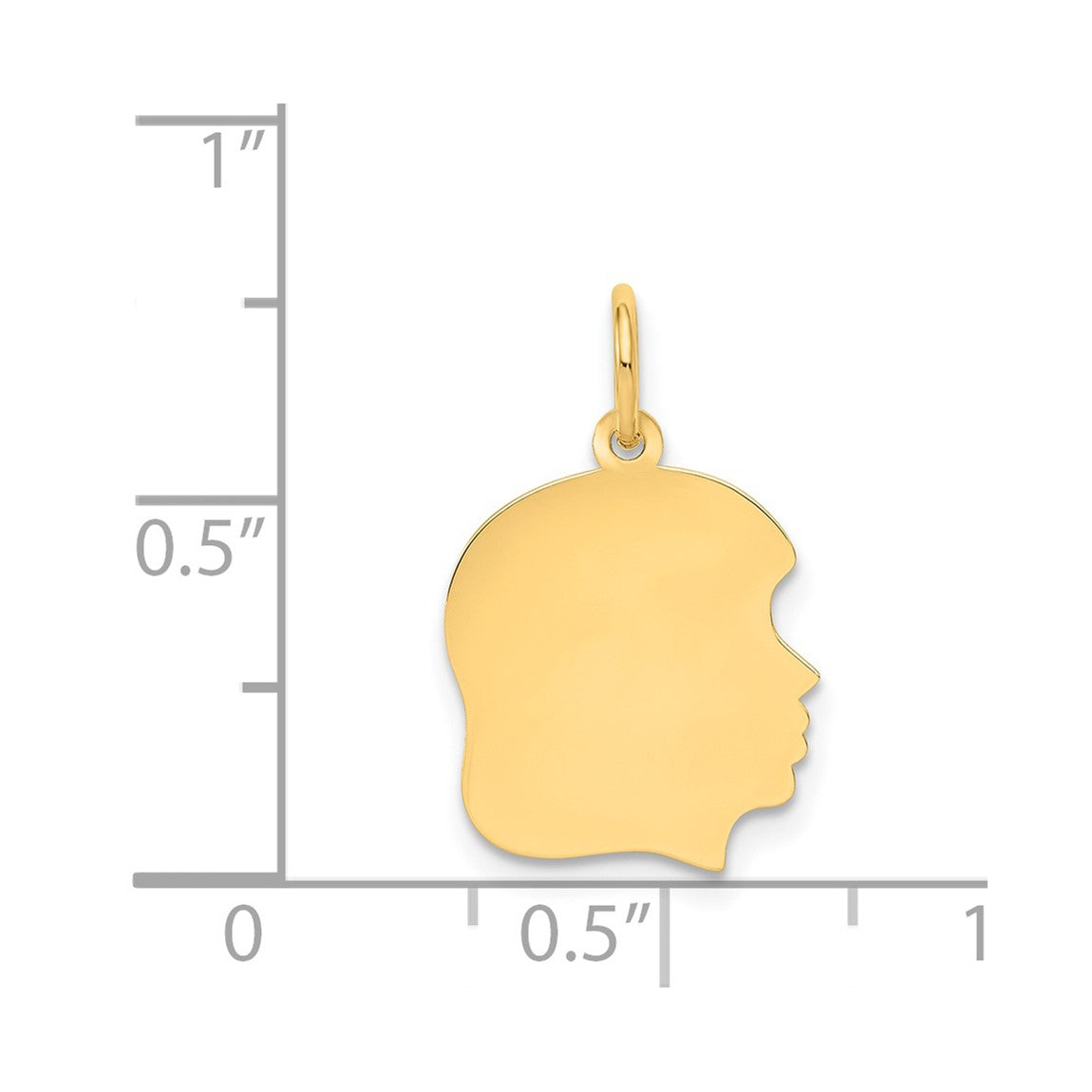 14k Gold Plain Medium .009 Gauge Facing Right Engravable Girl Head Charm X109/09