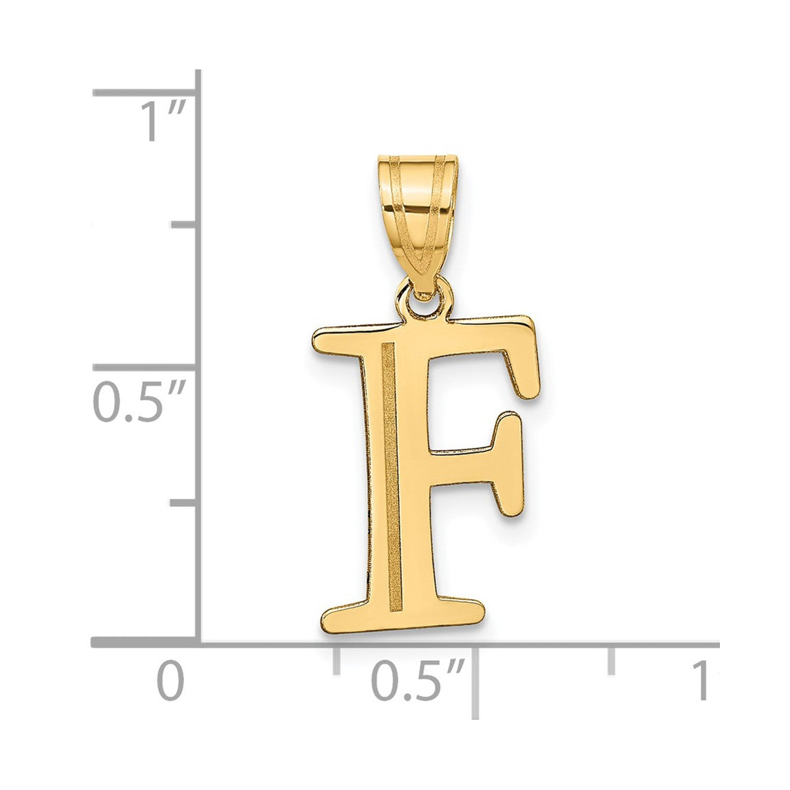 14k Yellow Gold Polished Etched Letter F Initial Pendant