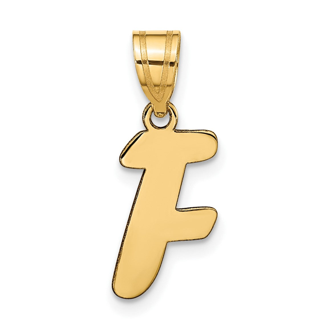 14k Yellow Gold Polished Script Letter F Initial Pendant
