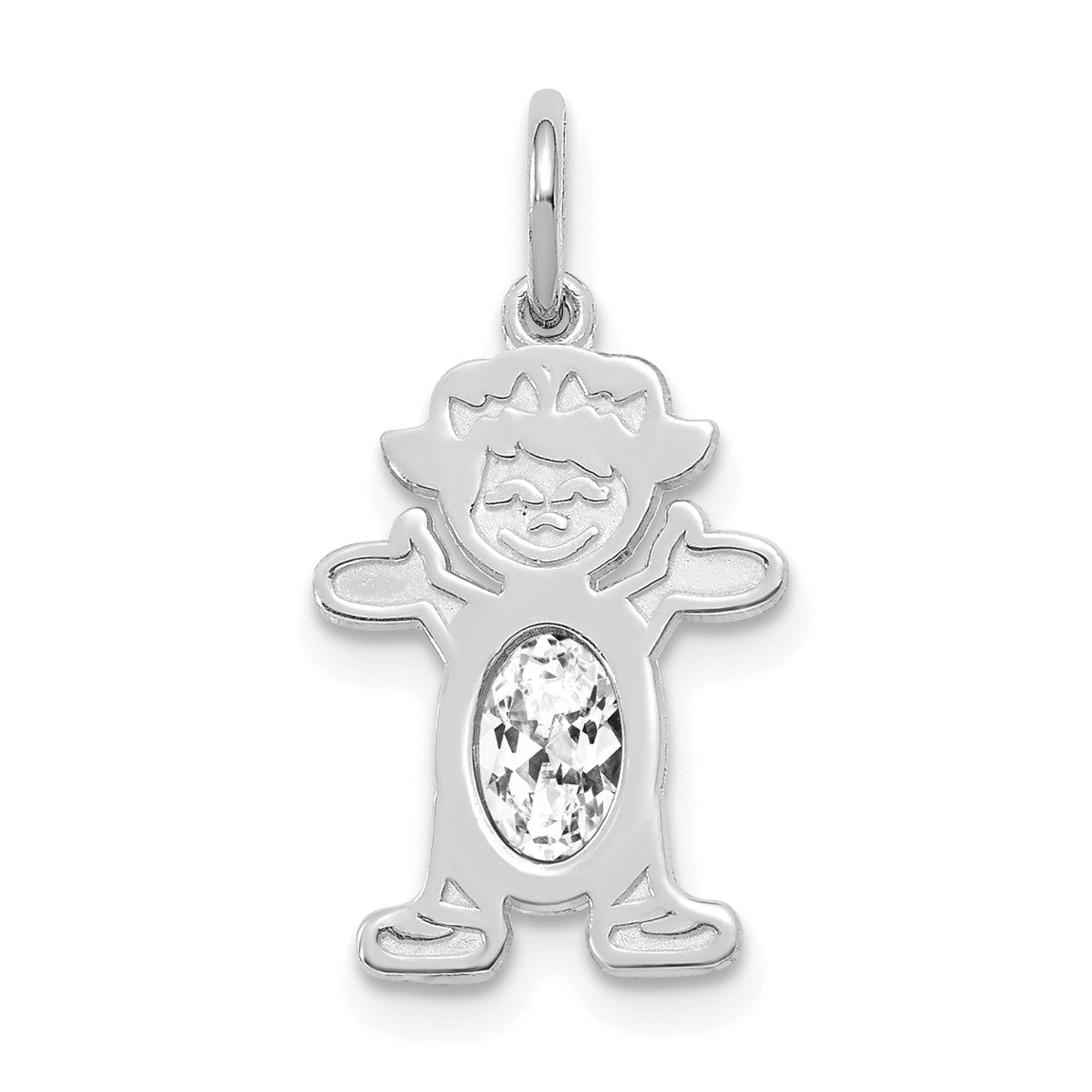 14K White Gold Girl 6x4 Oval Genuine White Topaz Pendant