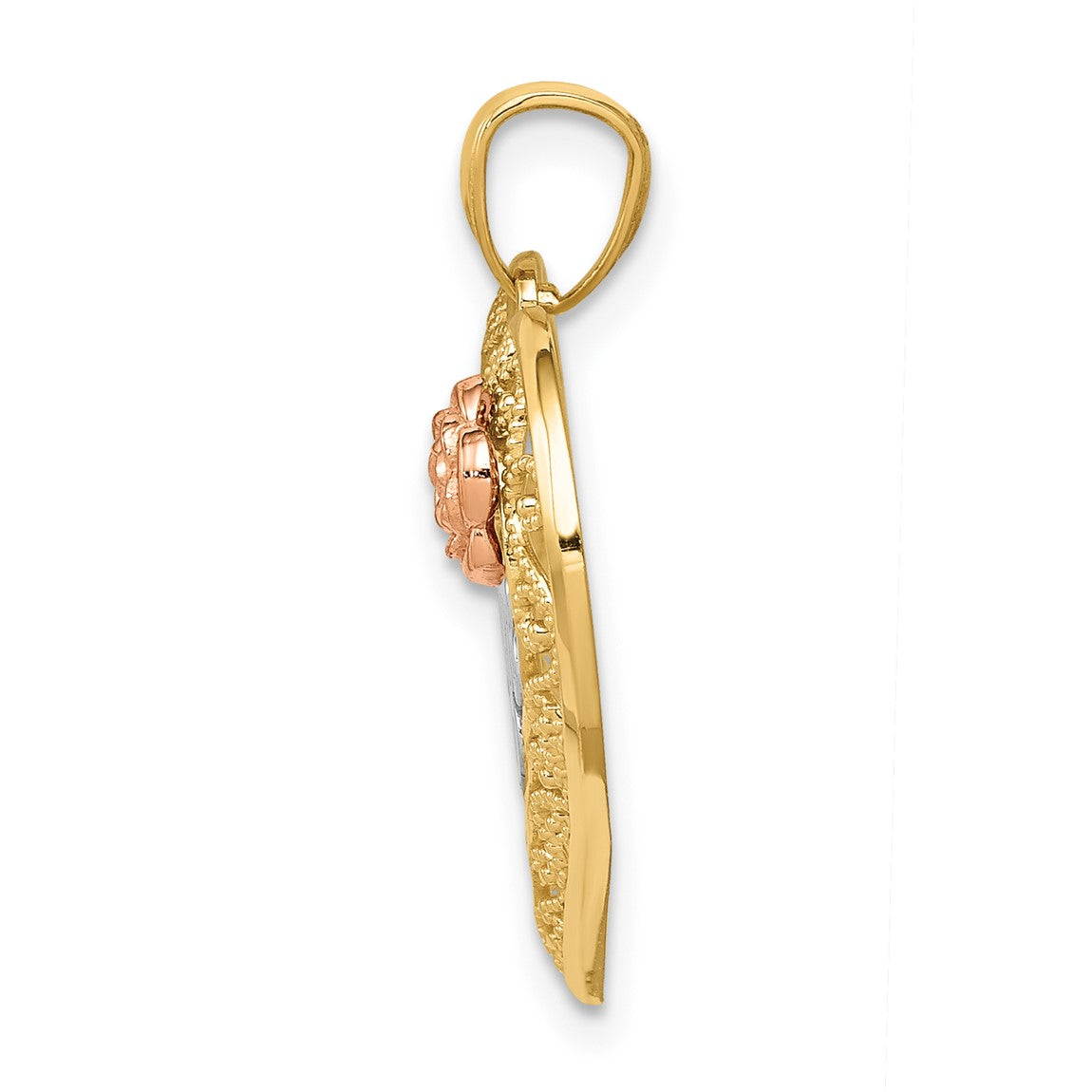14k Yellow and Rose Gold w/Rhodium Diamond-cut Mom in Heart w/Rose Pendant