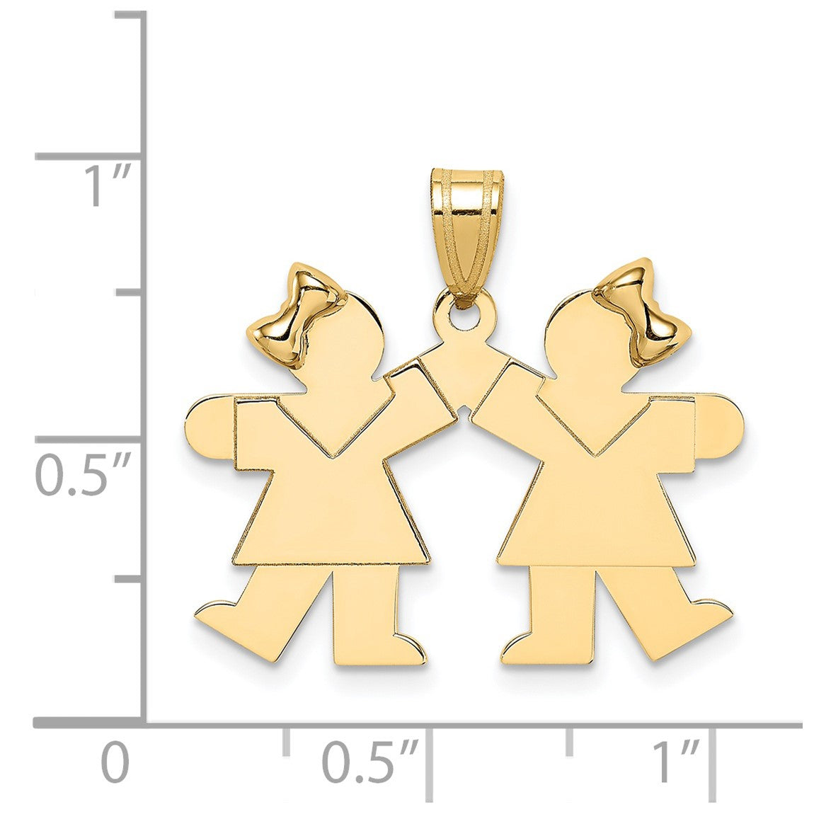14k Yellow Gold Solid Engravable Small Double Girls Pendant