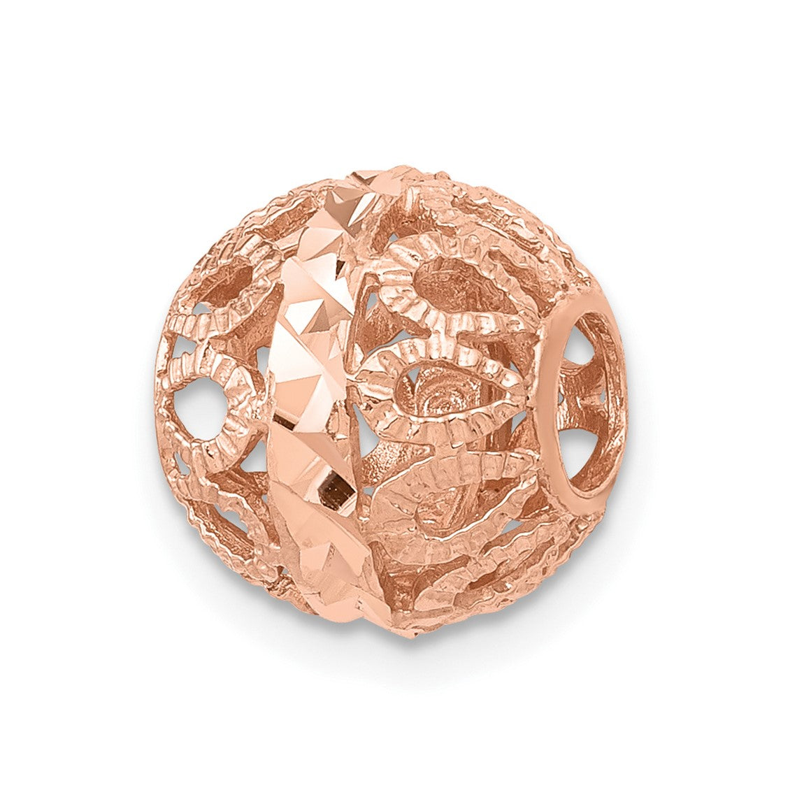 14k Rose Gold Diamond-cut Filigree Ball Chain Slide Pendant
