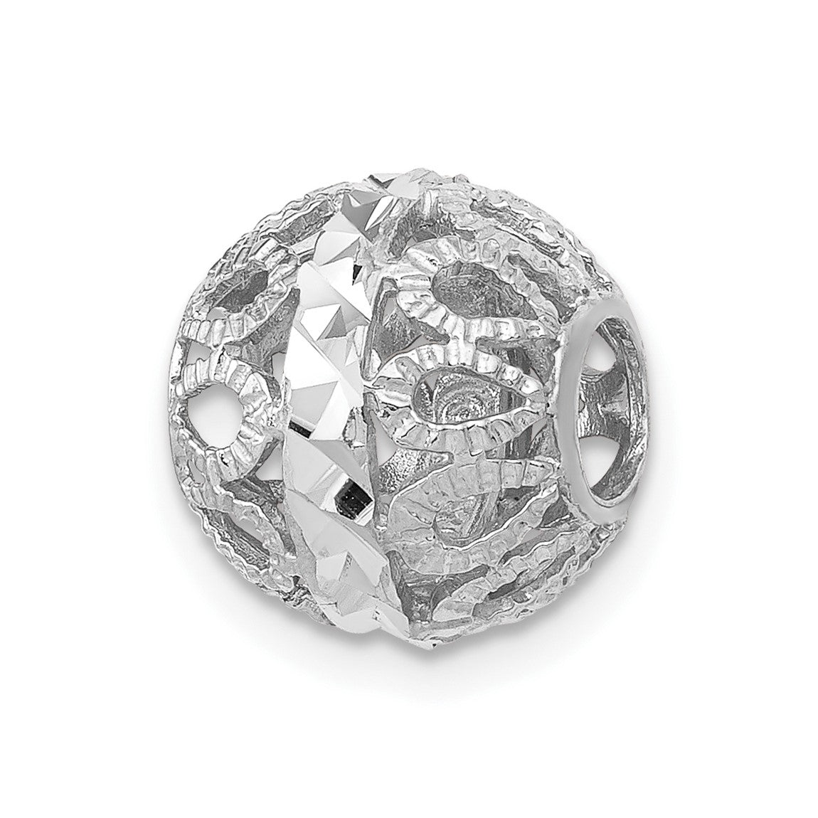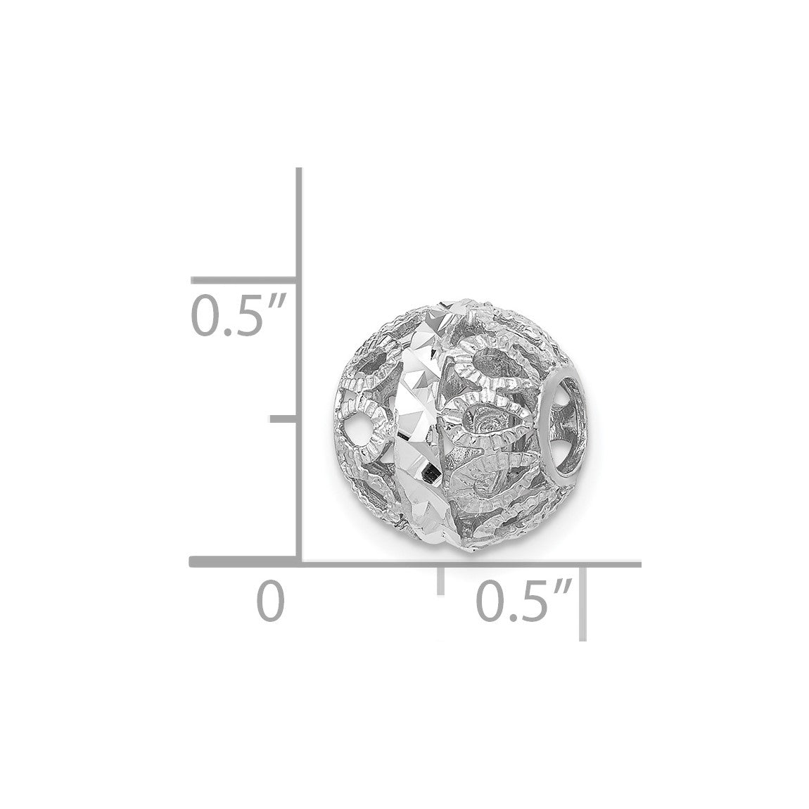 14k White Gold Diamond-cut Filigree Ball Chain Slide Pendant