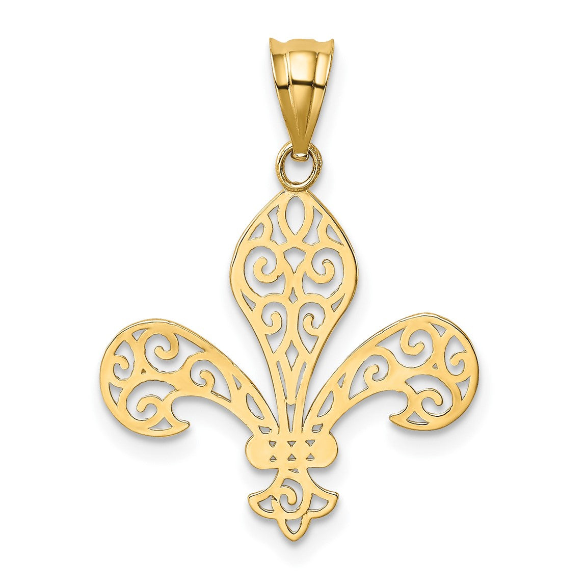 14k Yellow Gold Filigree Fleur De Lis Pendant