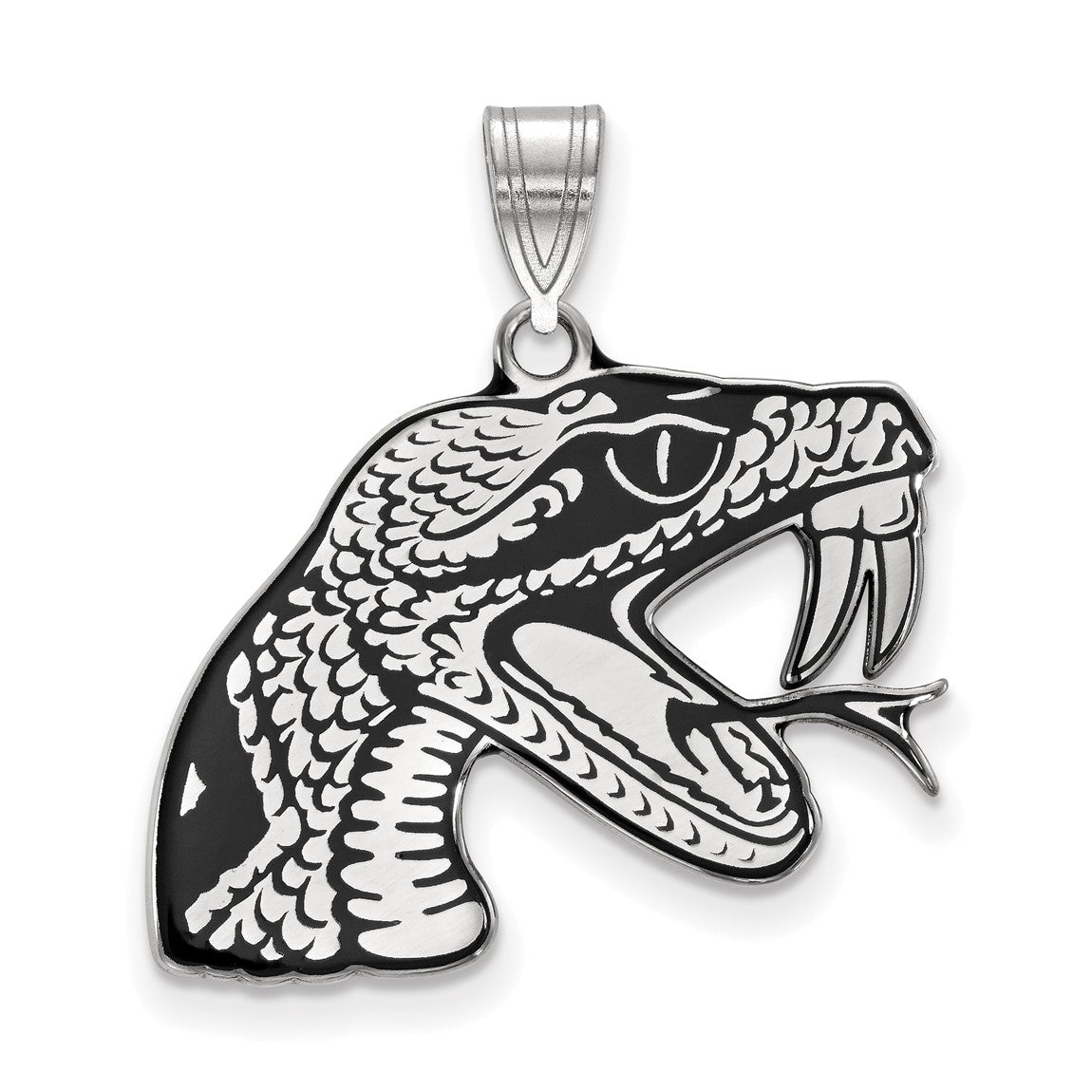 Sterling Silver Rhodium-plated LogoArt Florida A and M University Rattler Large Enameled Pendant