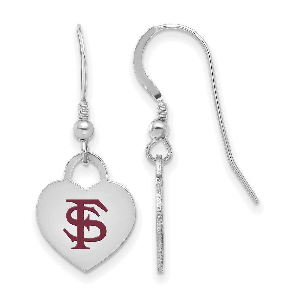 Sterling Silver Rhodium-plated LogoArt Florida State University Enamel Heart Dangle Earrings