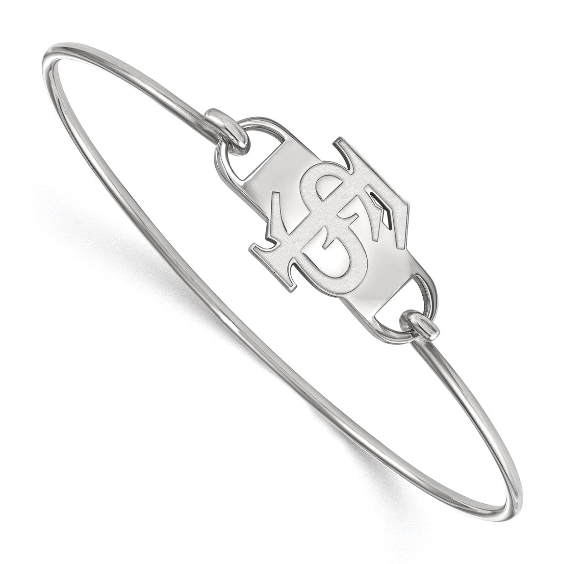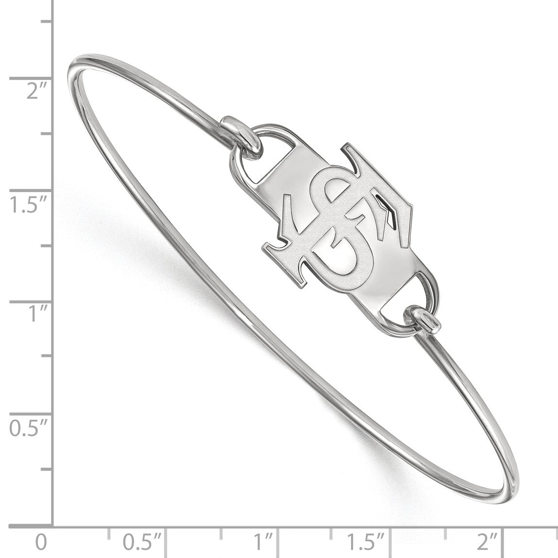 Sterling Silver Rhodium-plated LogoArt Florida State University F-S Small Center 7 inch Wire Bangle Bracelet