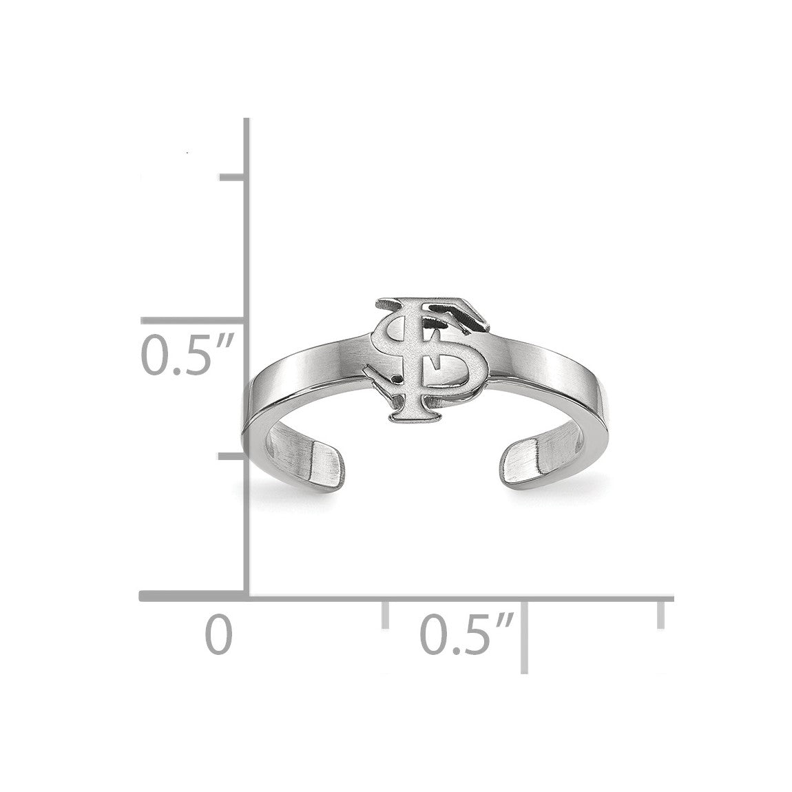 Sterling Silver Rhodium-plated LogoArt Florida State University F-S Toe Ring