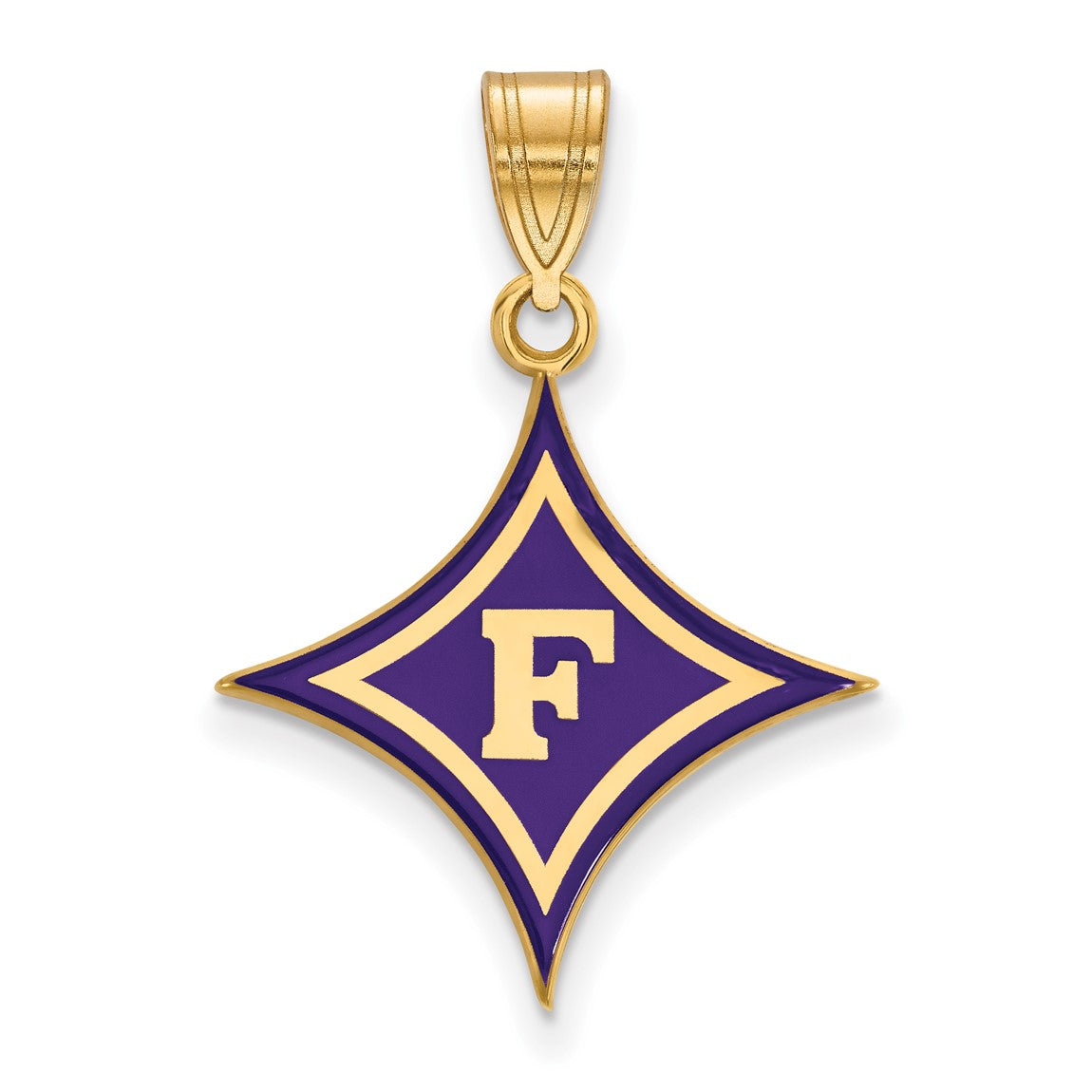 Sterling Silver Gold-plated LogoArt Furman University Large Enameled Pendant