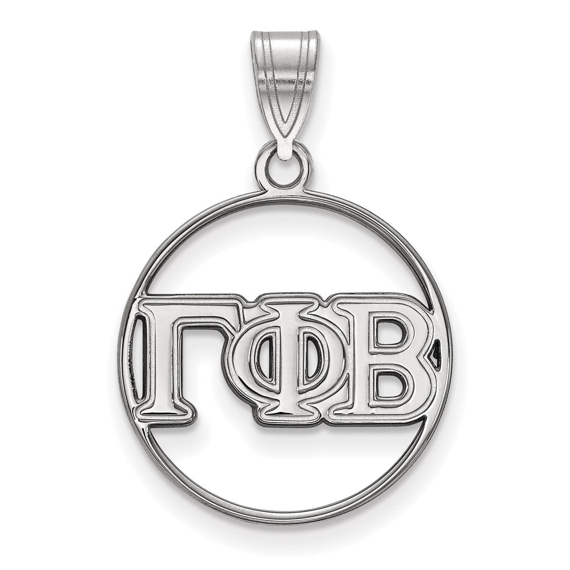 Sterling Silver Rhodium-plated LogoArt Gamma Phi Beta Sorority Greek Letters Medium Circle Pendant