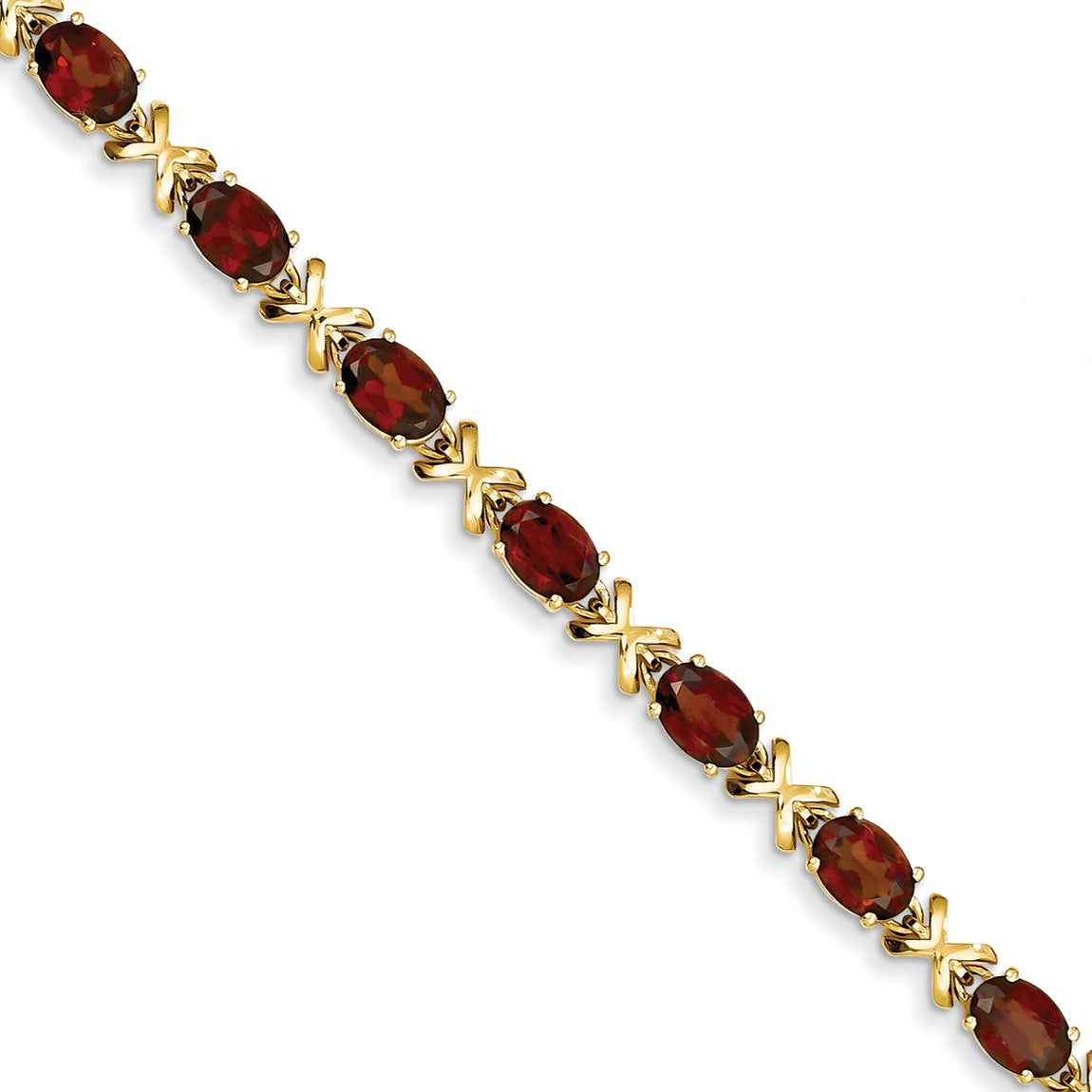7" 14k Yellow Gold 7x5mm Oval Garnet Bracelet X962GA