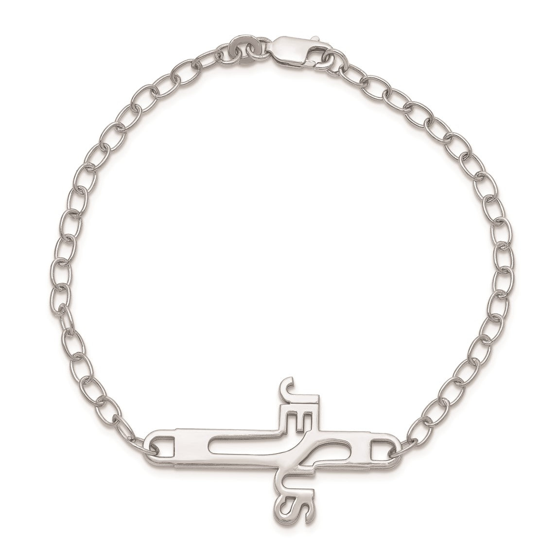 Sterling Silver Rhodium-plated Jesus Cross Womens 7.5in Bracelet