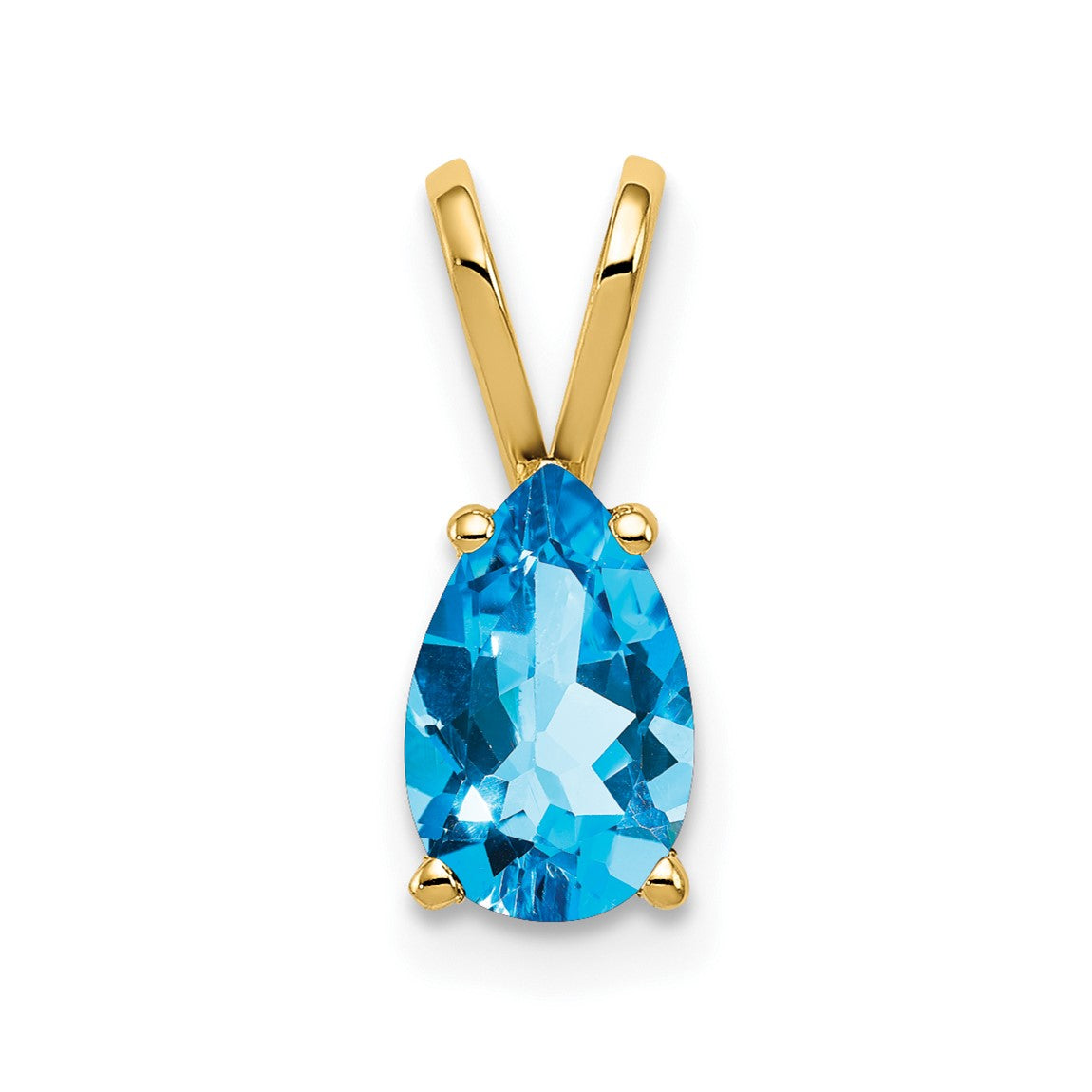 14k Yellow Gold 8x5mm Pear Blue Topaz Pendant