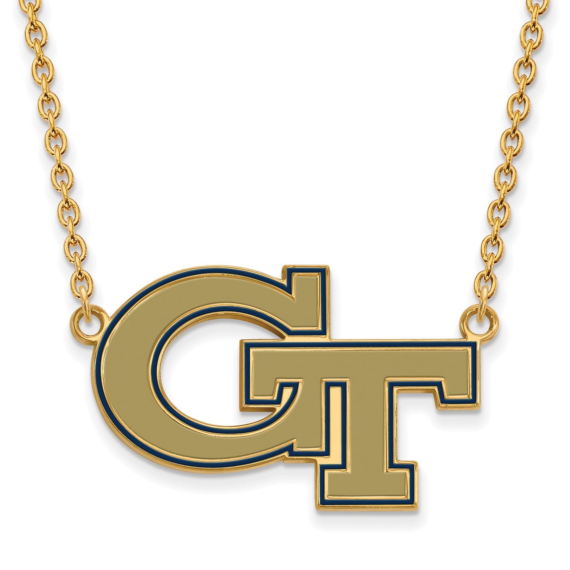 Sterling Silver Gold-plated LogoArt Georgia Institute of Technology G-T Large Enameled Pendant 18 inch Necklace