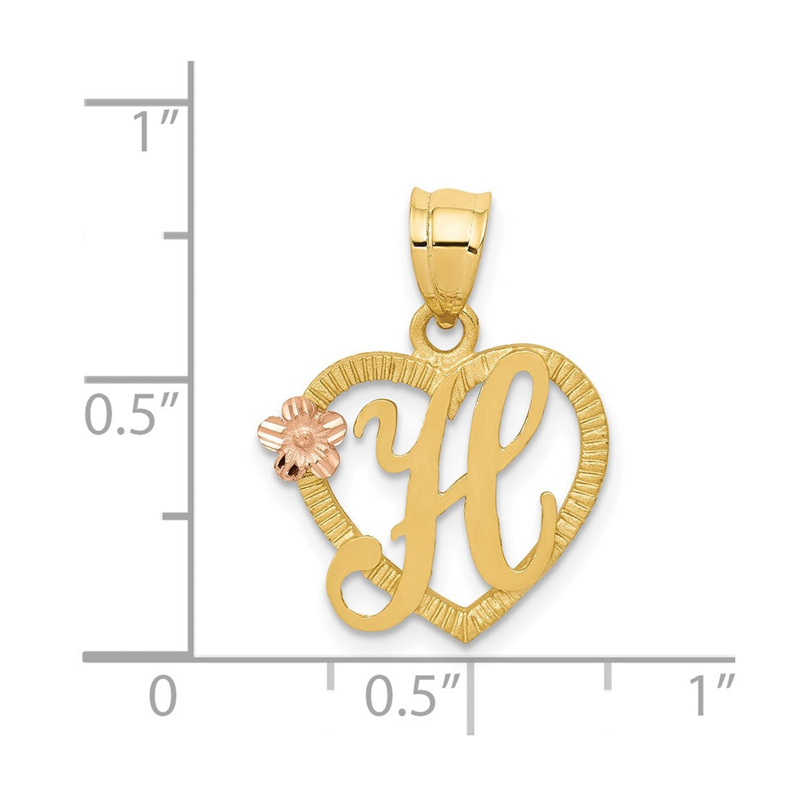 14k Yellow and Rose Gold Initial H In Heart Pendant