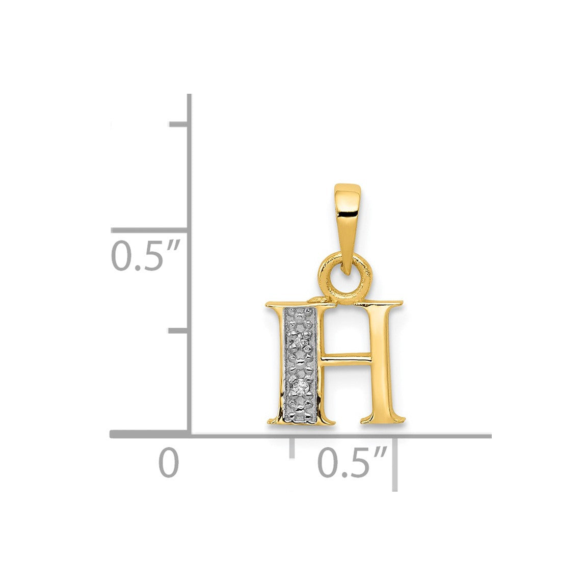 14k Yellow Gold and Rhodium Polished .01ctw Diamond Initial H Pendant