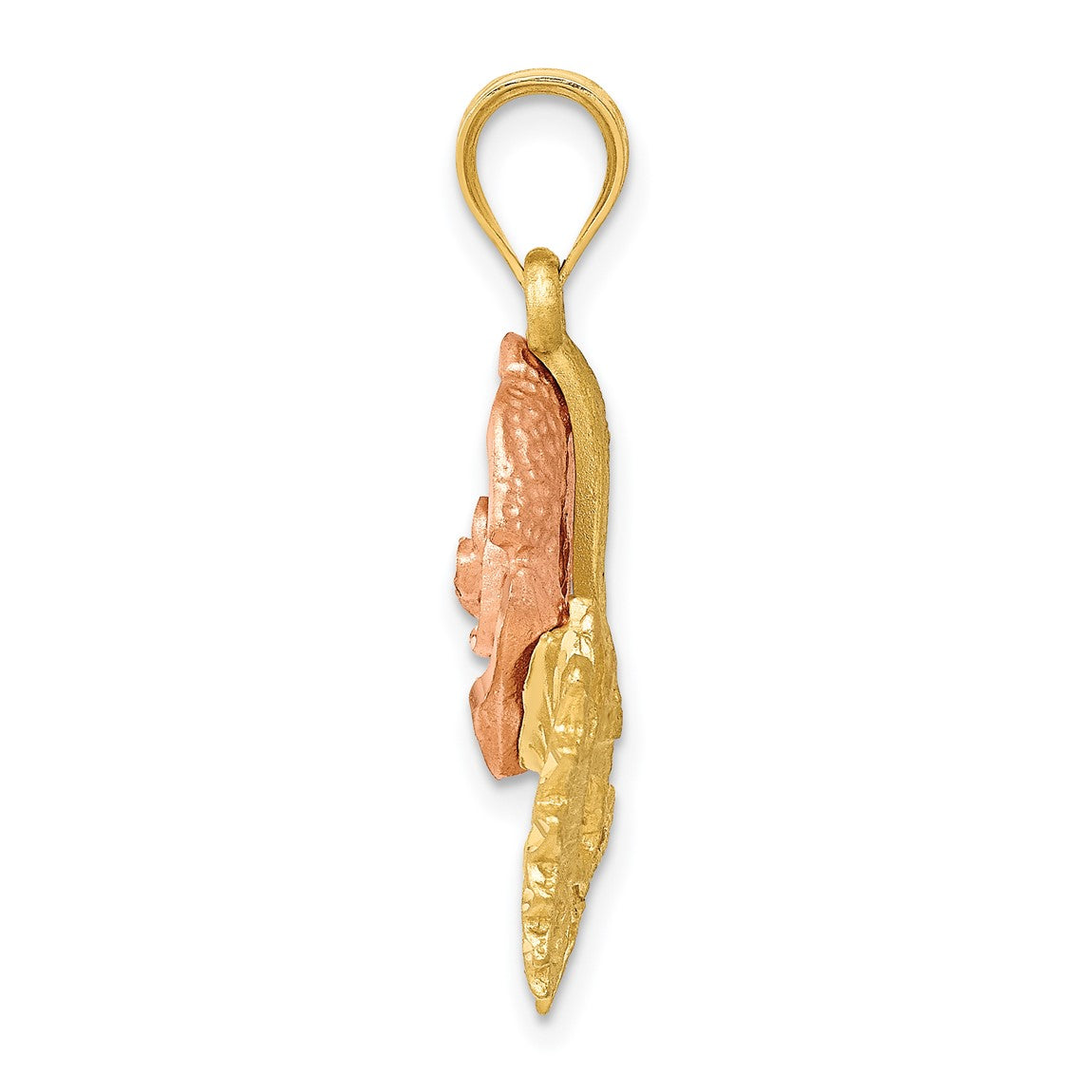 14k Yellow and Rose Gold Solid Satin Diamond-cut Flower Pendant