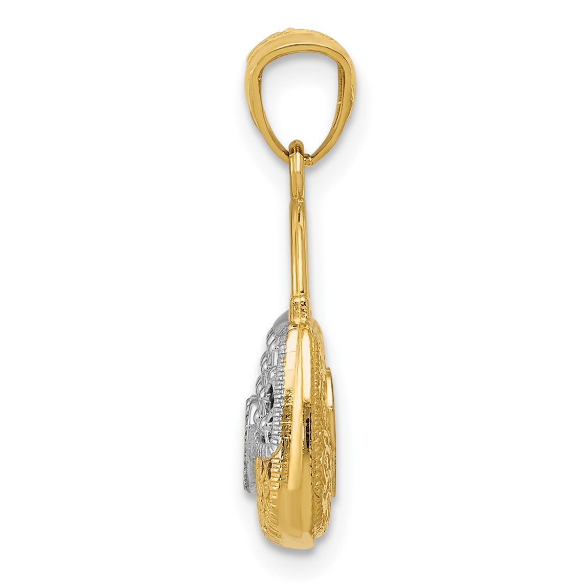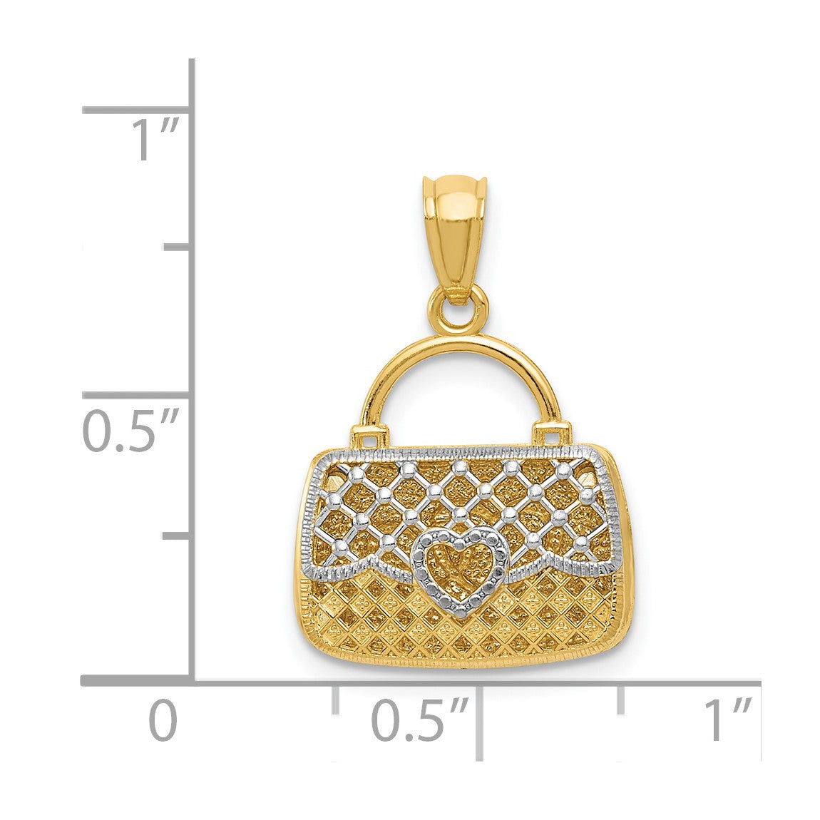 14k Yellow Gold And Rhodium Reversible Heart Handbag Pendant