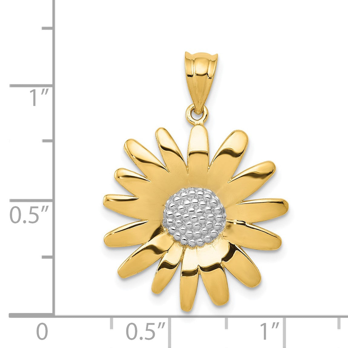 14k Yellow Gold And Rhodium Sunflower Pendant