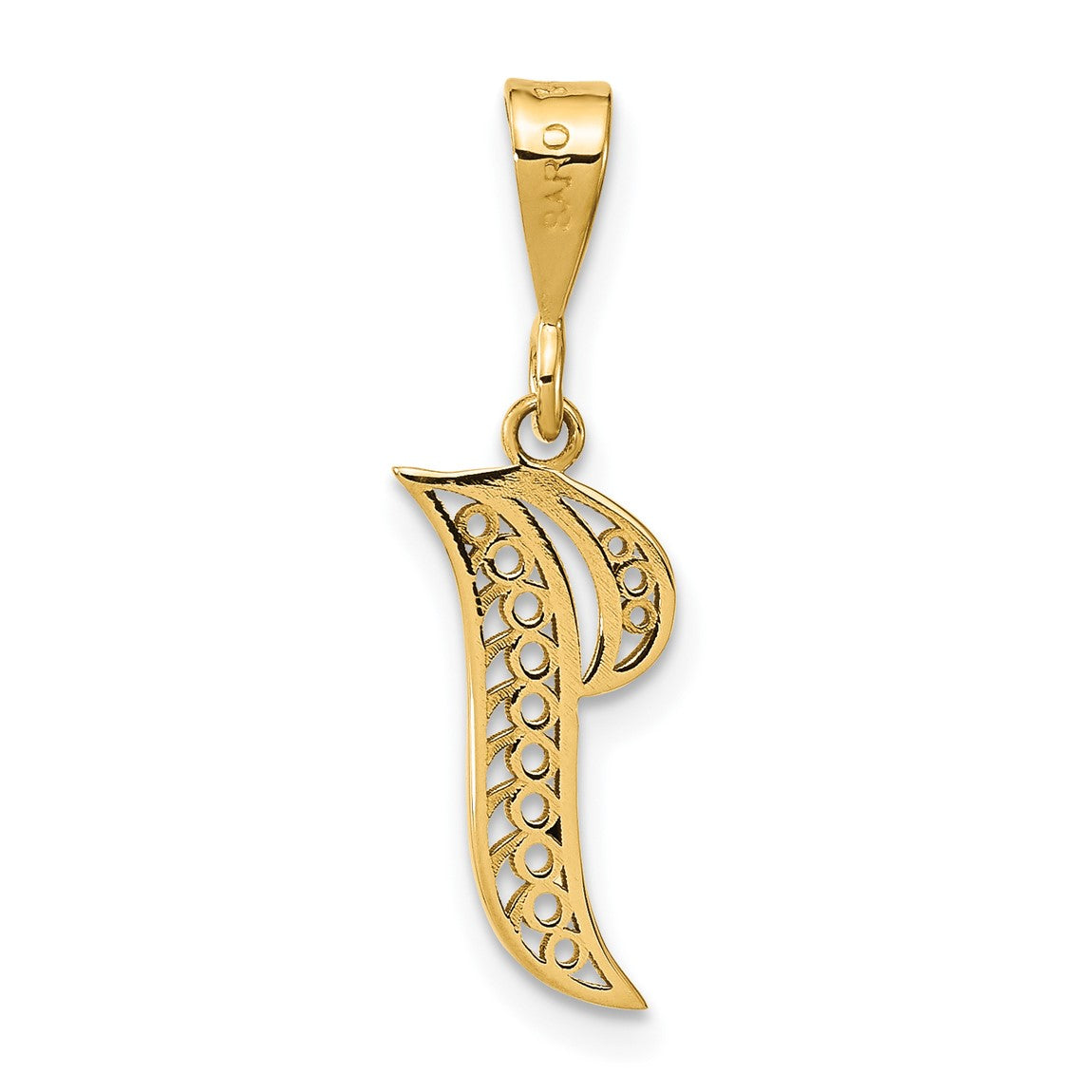 14k Yellow Gold Polished Script Filigree Letter I Initial Pendant