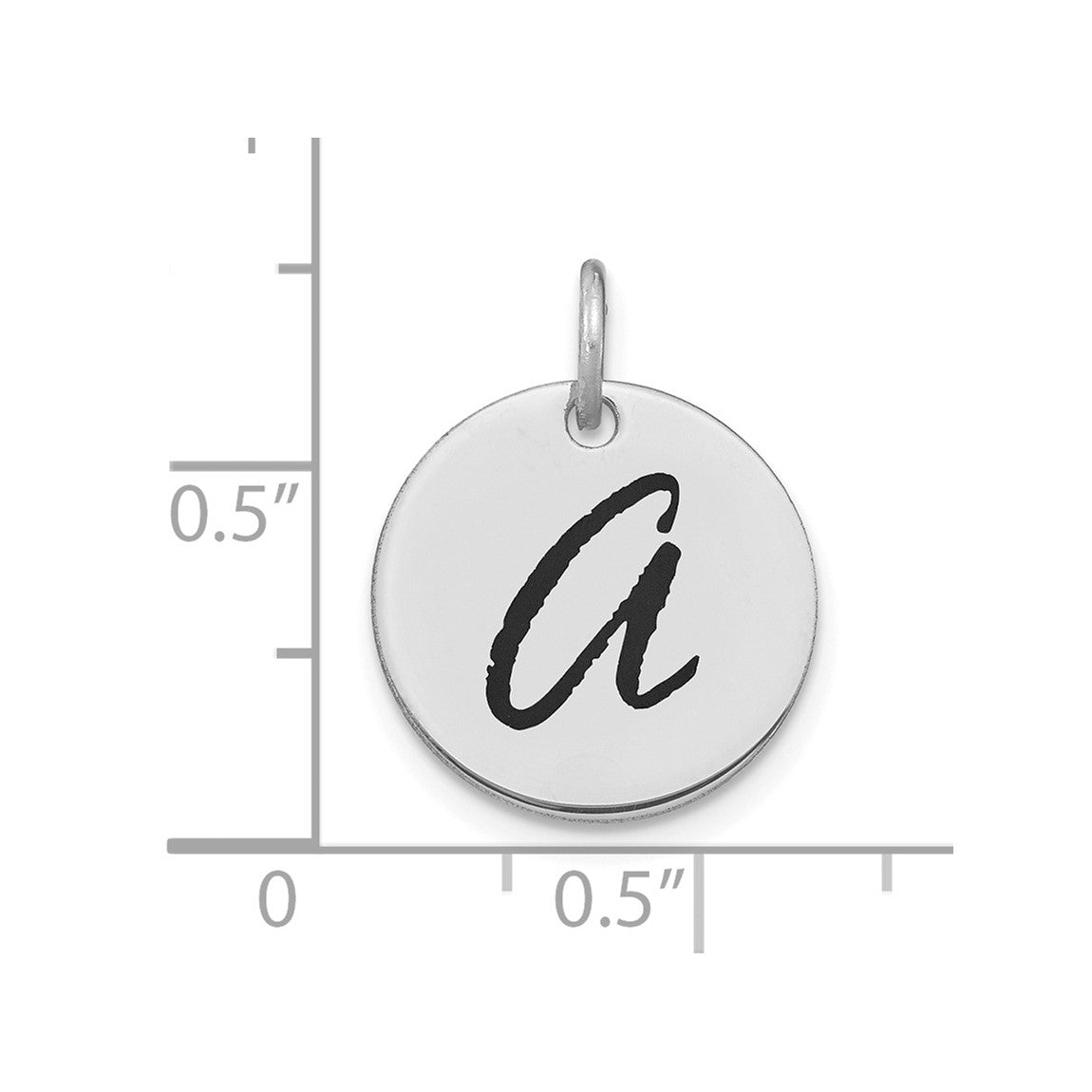 14k White Gold Polished Letter A Black Epoxy Initial Disk Charm