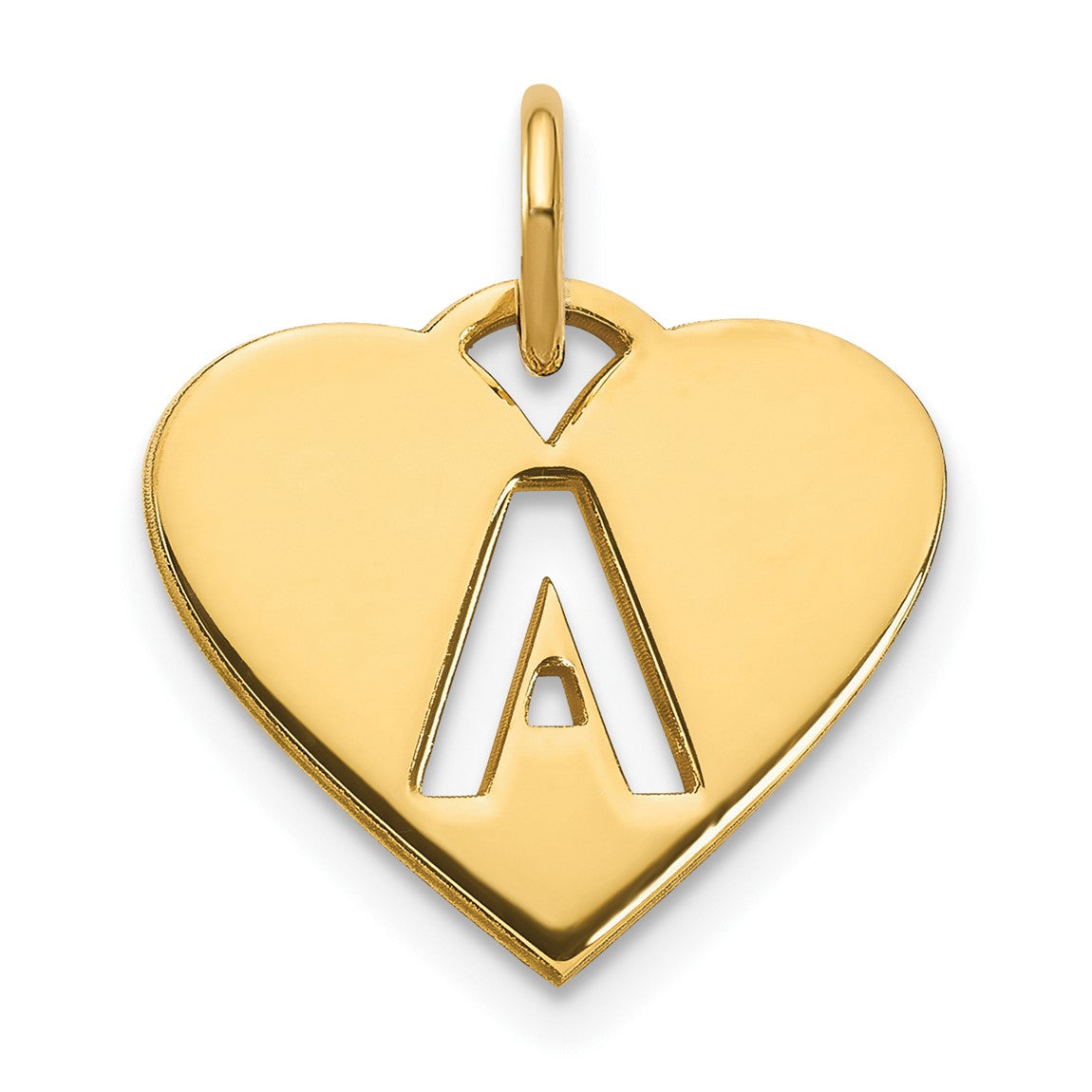 14k Yellow Gold Initial Letter A Initial Heart Charm